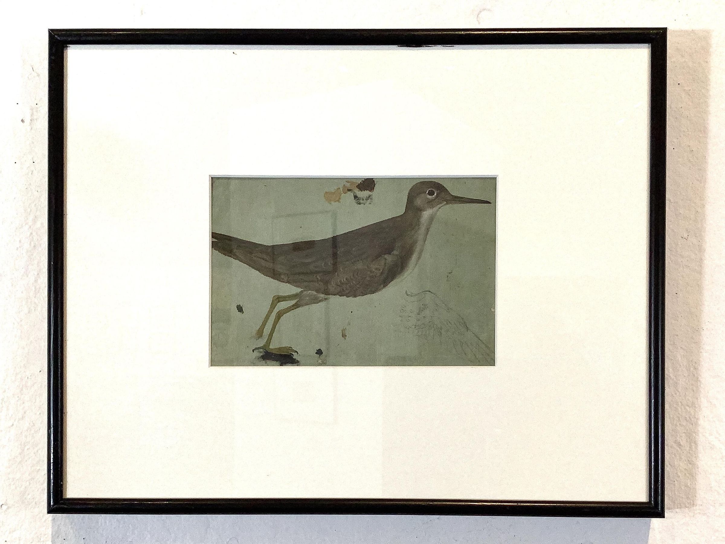 Gouache and graphite painting of a sandpiper on paper. The bird stands in profile looking to the right. Below the bird's breast is a pencil sketch of bird wing.Artwork Details