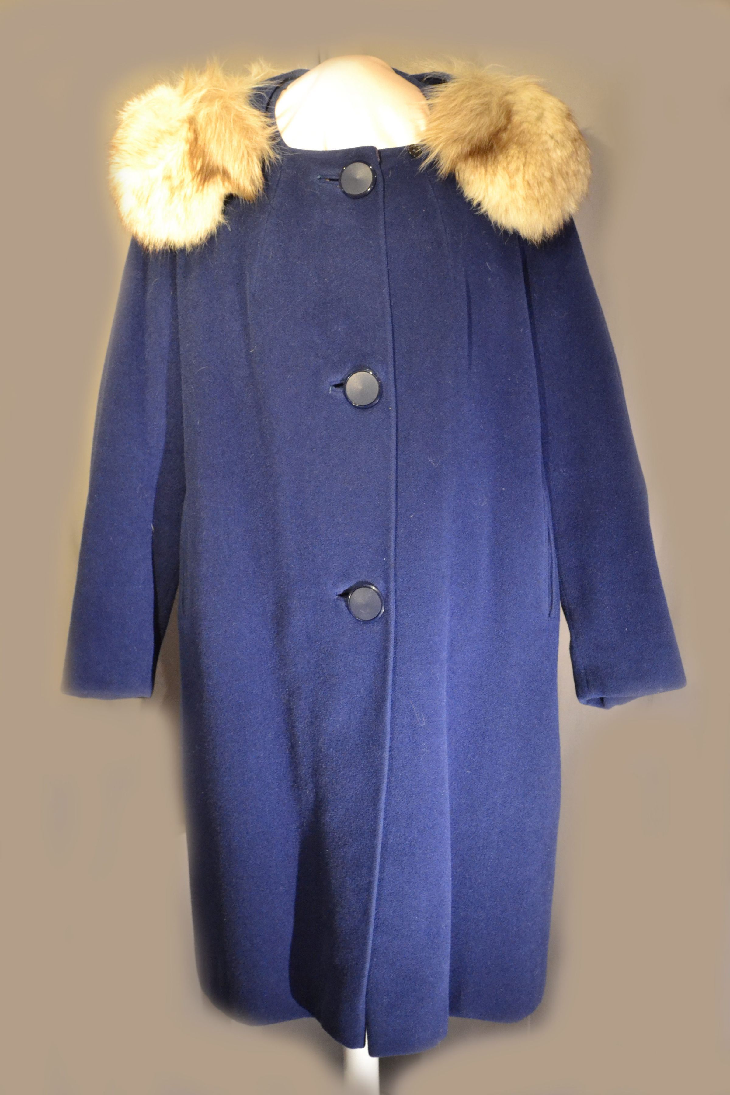 By the mid-1950s, coats had narrowed somewhat from the tent-like shapes that had been in favor at the beginning of the decade. They were still designed to hang fairly loosely from the shoulder, but lacked the extra fullness that had been considered stylish around 1950. Fur trim also experienced a revival in popularity at mid-decade, with fur collars, cuffs, pockets, and linings appearing on all sorts of outerwear. For those who could afford them, fur muffs, stoles, and capes were also considered very smart. This coat was owned by Margaret Sherman of Saco.