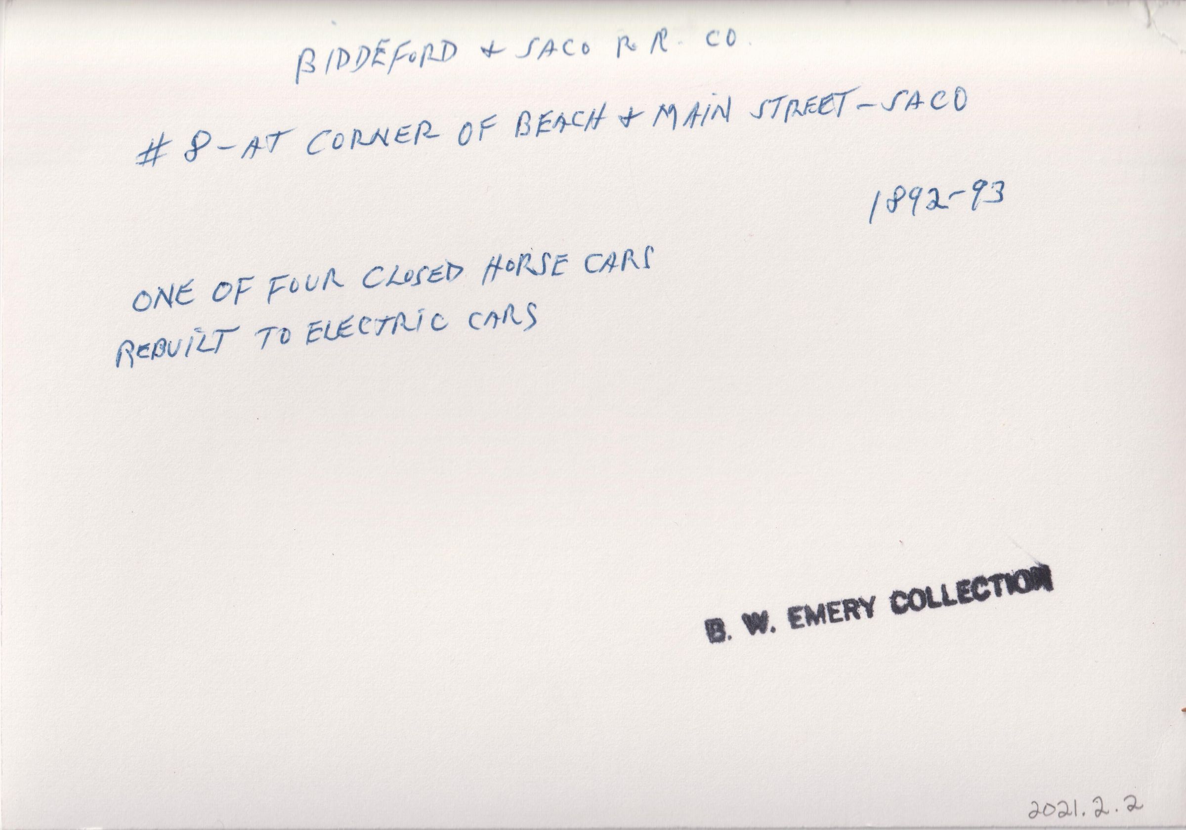 Beach and Main Street, Saco, Car #8Entry/Object ID