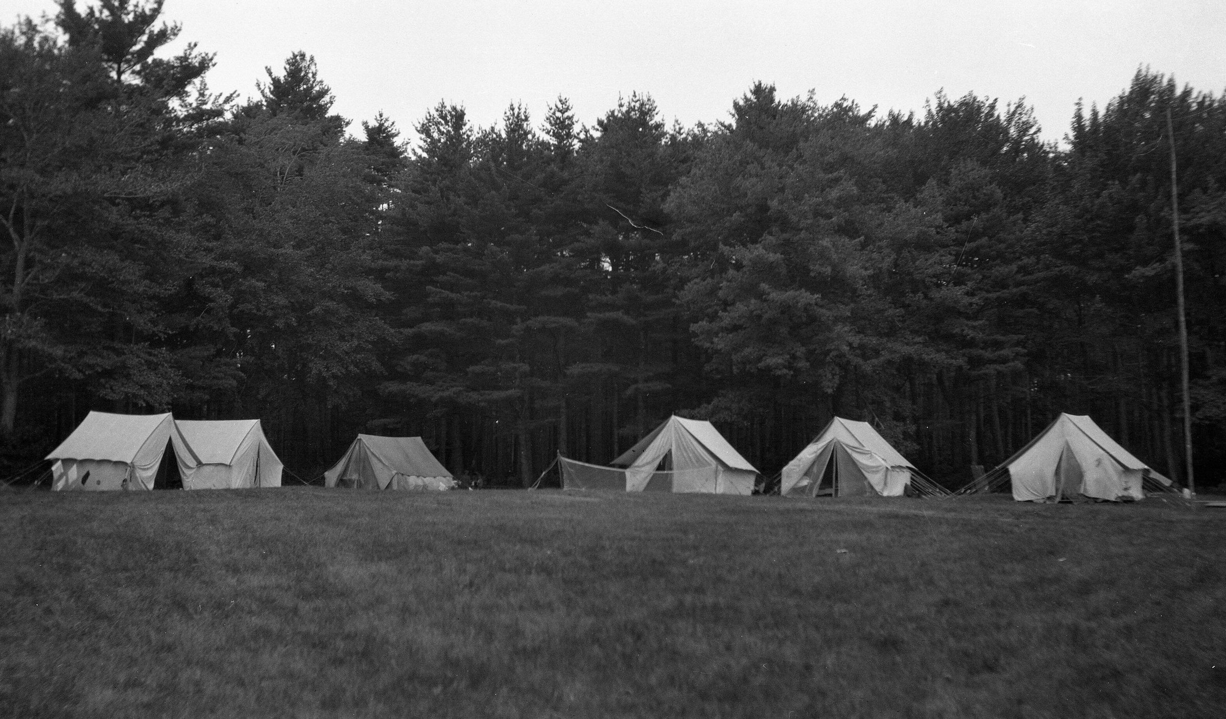 Negative print photo of camping tents at Camp Ellis, ME.