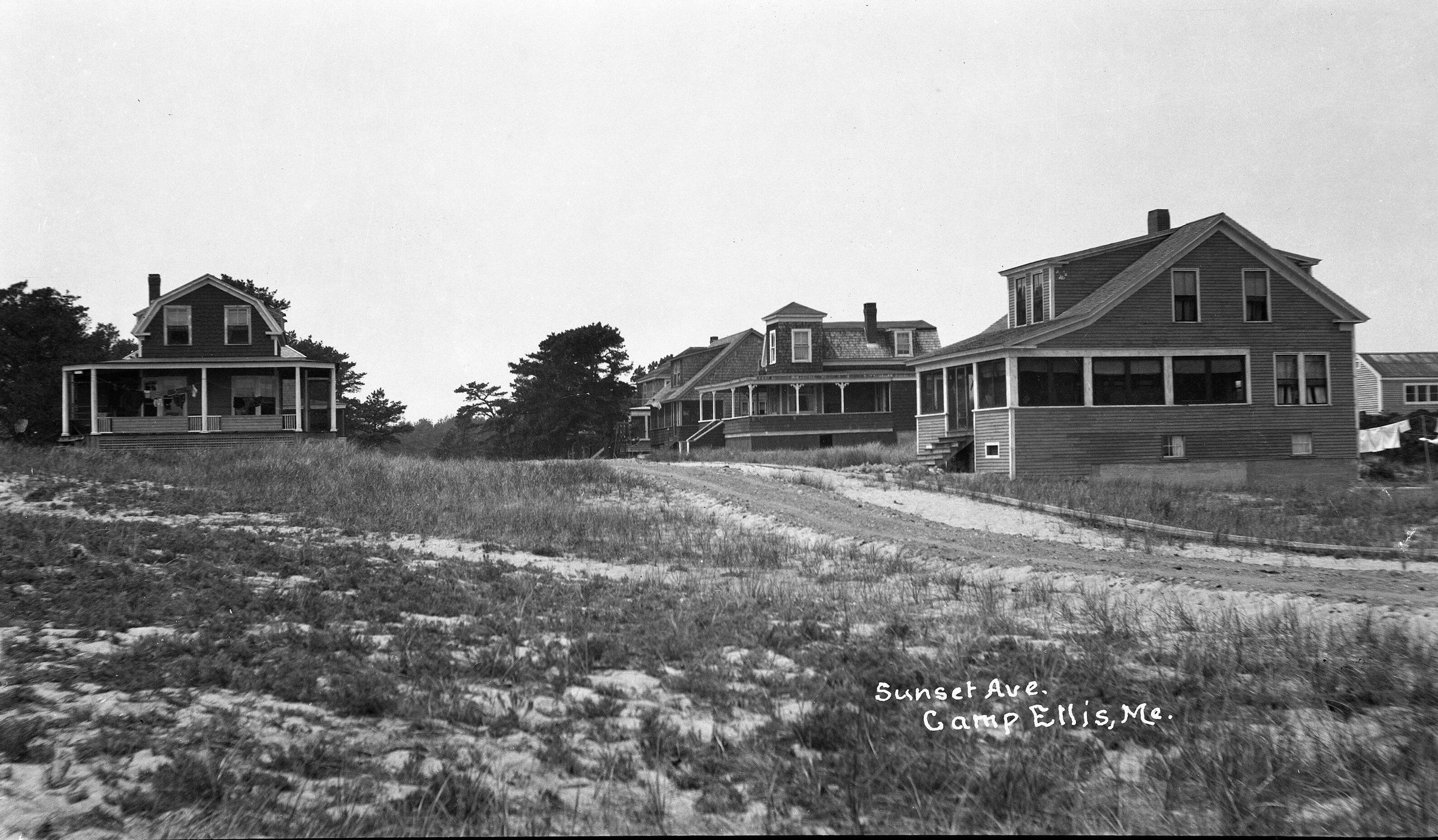 Negative print photo of Sunset Ave. in Camp Ellis, ME. Circa 1910-1912.