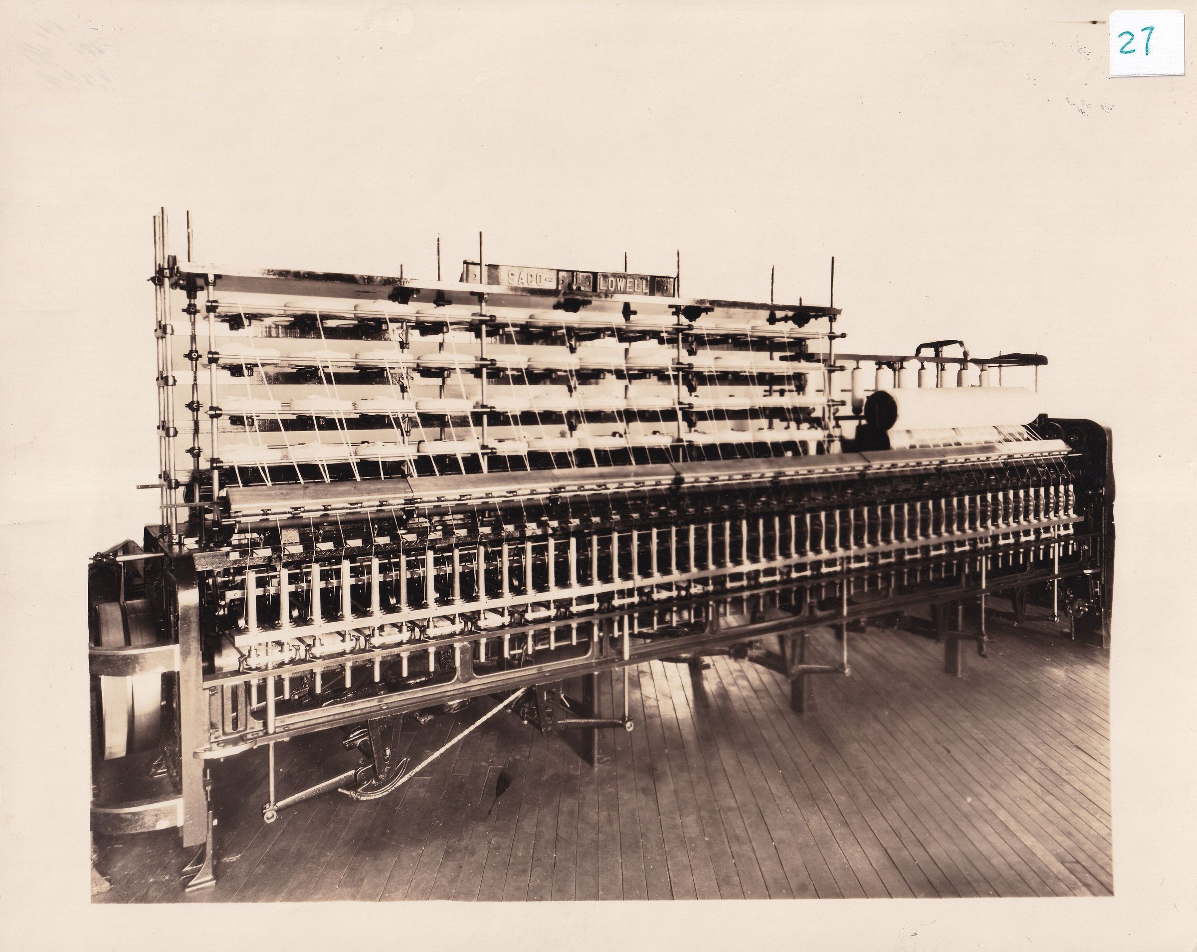 A spooler machine. The spoolers converted the sliver from the carding machines into fiber for the roving machines and beyond.Made/Created
