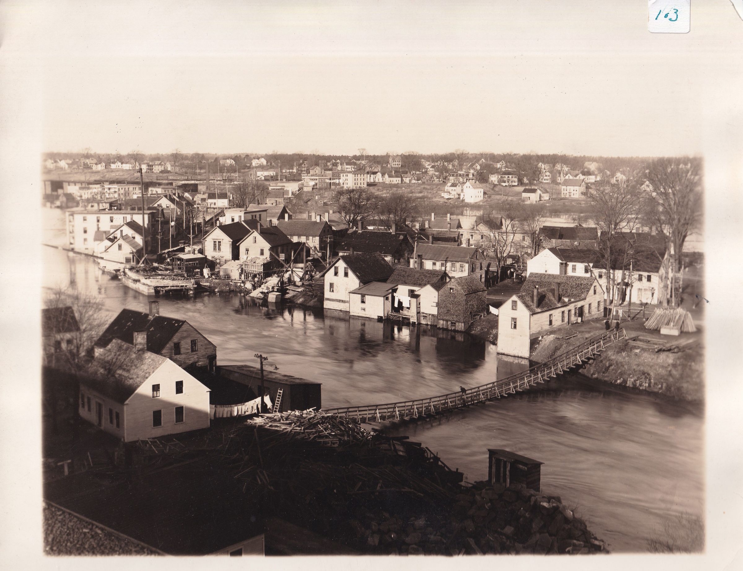 A footbridge over the Saco River. Somesville is the island on the far side of the river.Made/Created