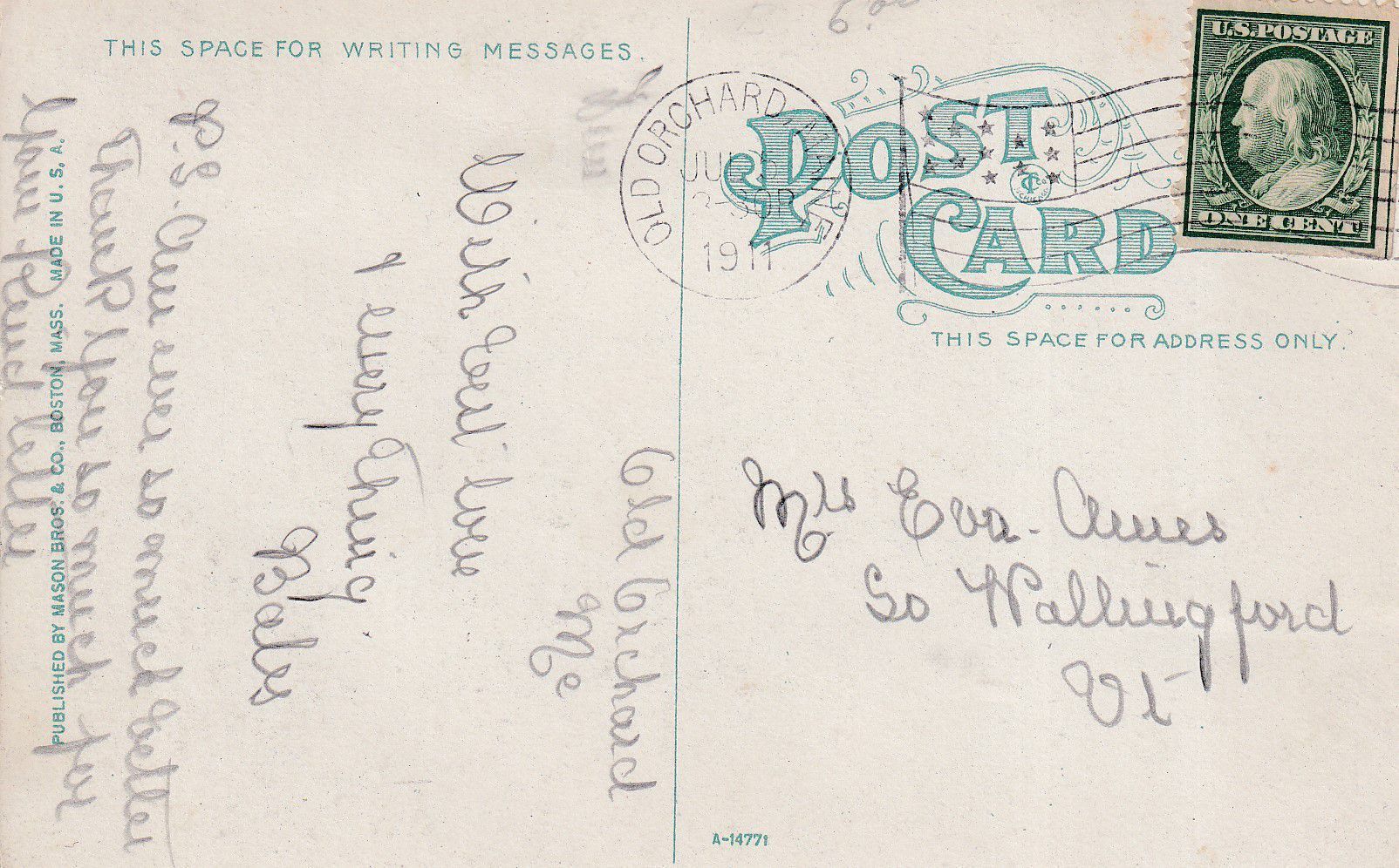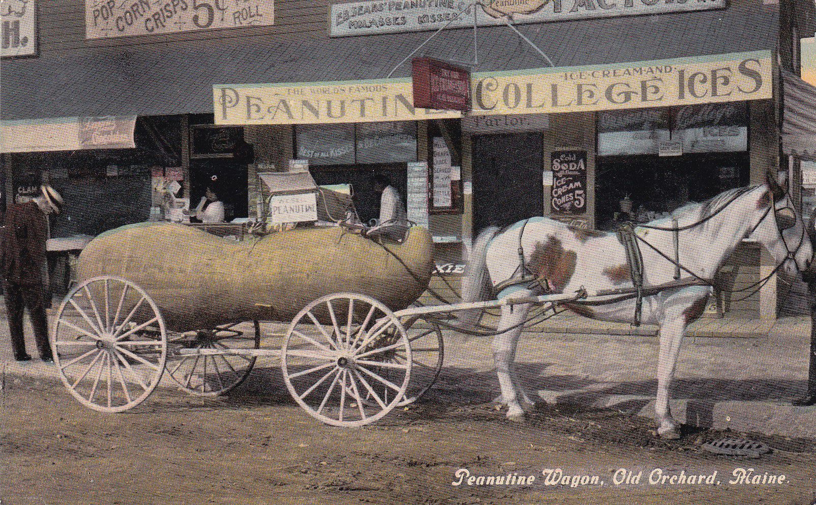 A postcard bearing a colorized image of the horse-drawn peanutine wagon.