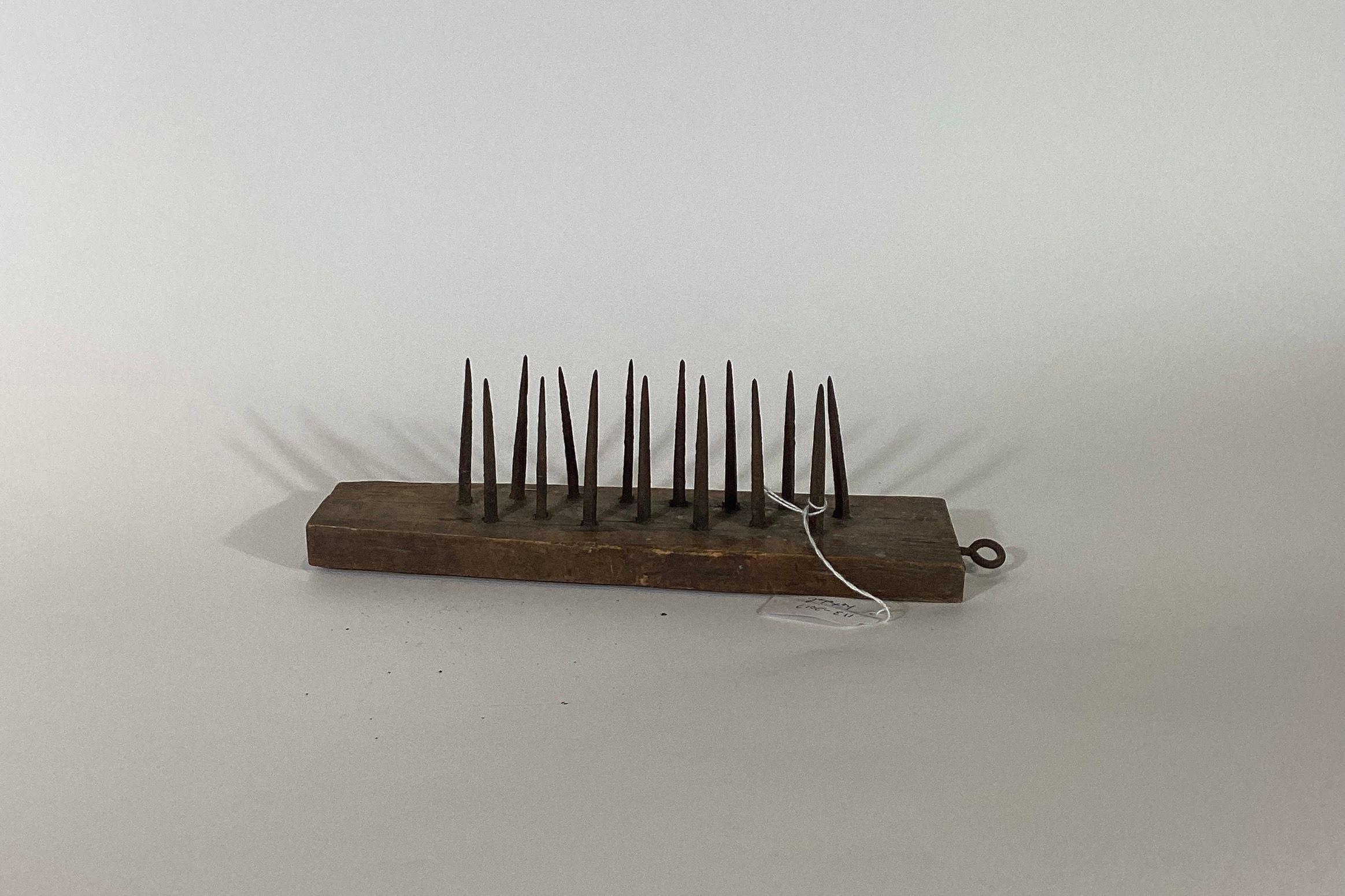 Rippling was the process of removing the seeds from the flax plant. There were a variety of ways to accomplish this, but the best method was to pull the flax through a comb with widely spaced teeth until all of the seeds fell off. This kept the fibers untangled and intact.