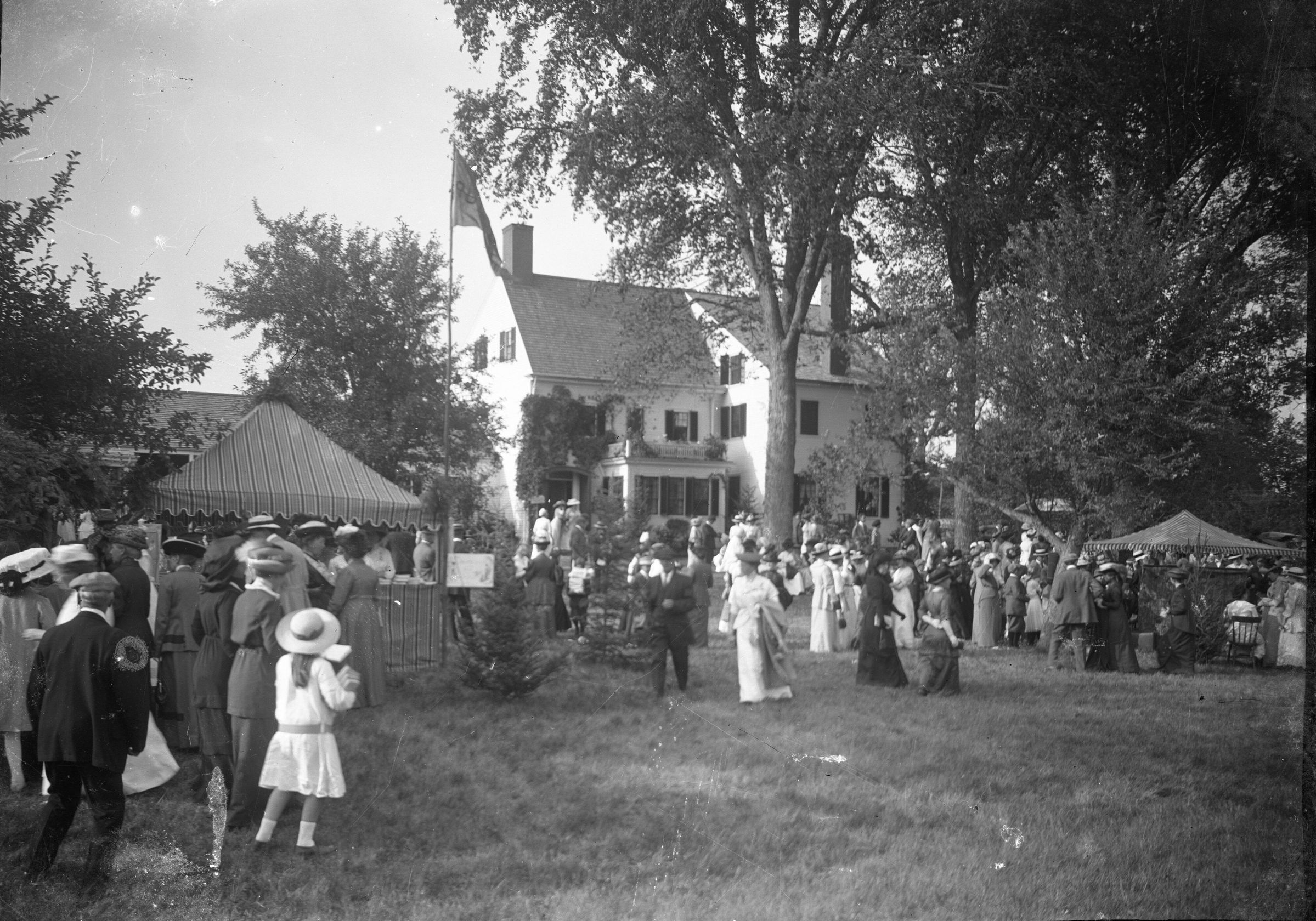 Glass plate negative photo of the Dorcas Fair at Quillcote, Kate Douglas Wiggin's residence in Hollis, ME.Made/Created