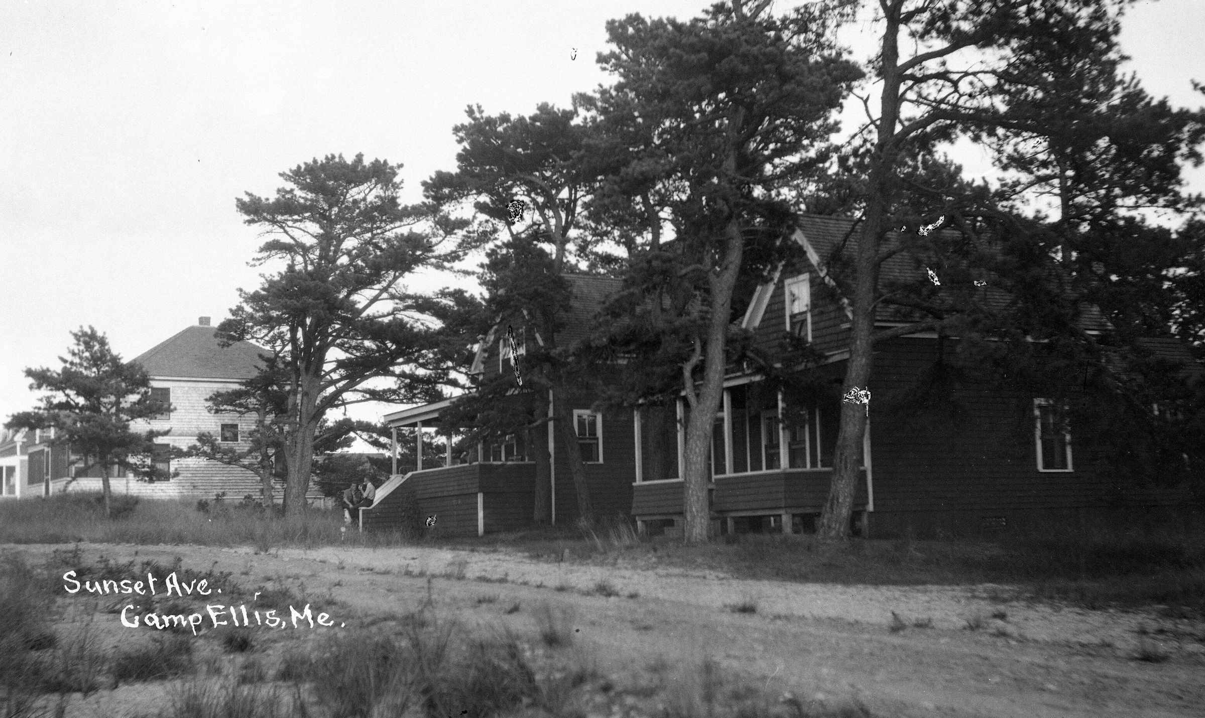 Negative print photo of Sunset Ave. at Camp Ellis, ME.