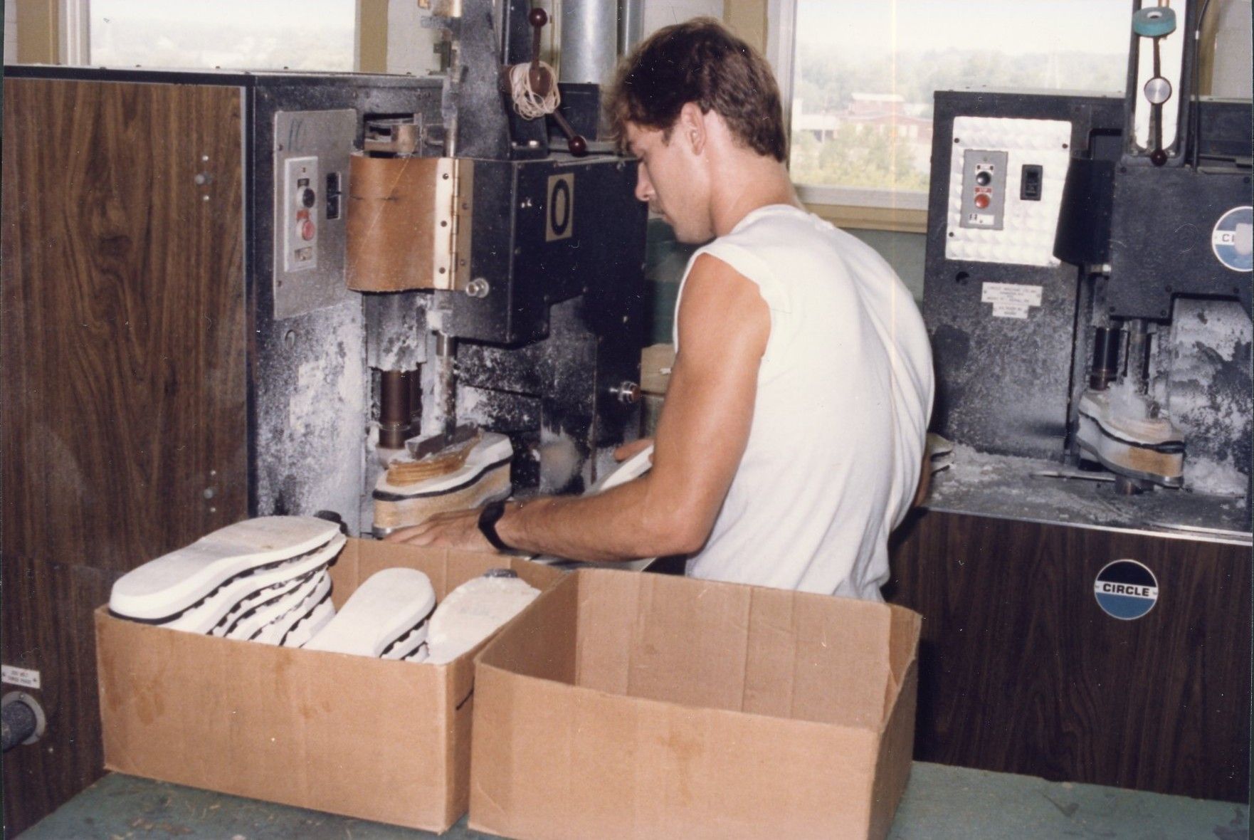 Color print photograph of Saco Nike Factory taken in July (or later), 1985. The Nike Factory located in Saco, Maine on Factory Island closed in November of 1985, about 8 years after it opened in 1978. The stated reason for closing was due to the increased labor cost and fringe benefits. After closing multiple American factories Nike focused on importing from Asia. 500 employees worked at the Saco Nike Factory, before shutting down.