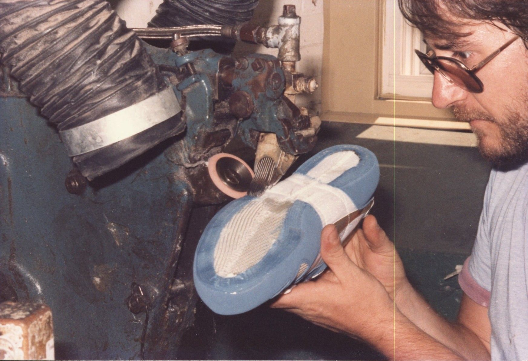 Color print photograph of Saco Nike Factory taken in July (or later), 1985. The Nike Factory located in Saco, Maine on Factory Island closed in November of 1985, about 8 years after it opened in 1978. The stated reason for closing was due to the increased labor cost and fringe benefits. After closing multiple American factories Nike focused on importing from Asia. 500 employees worked at the Saco Nike Factory, before shutting down.