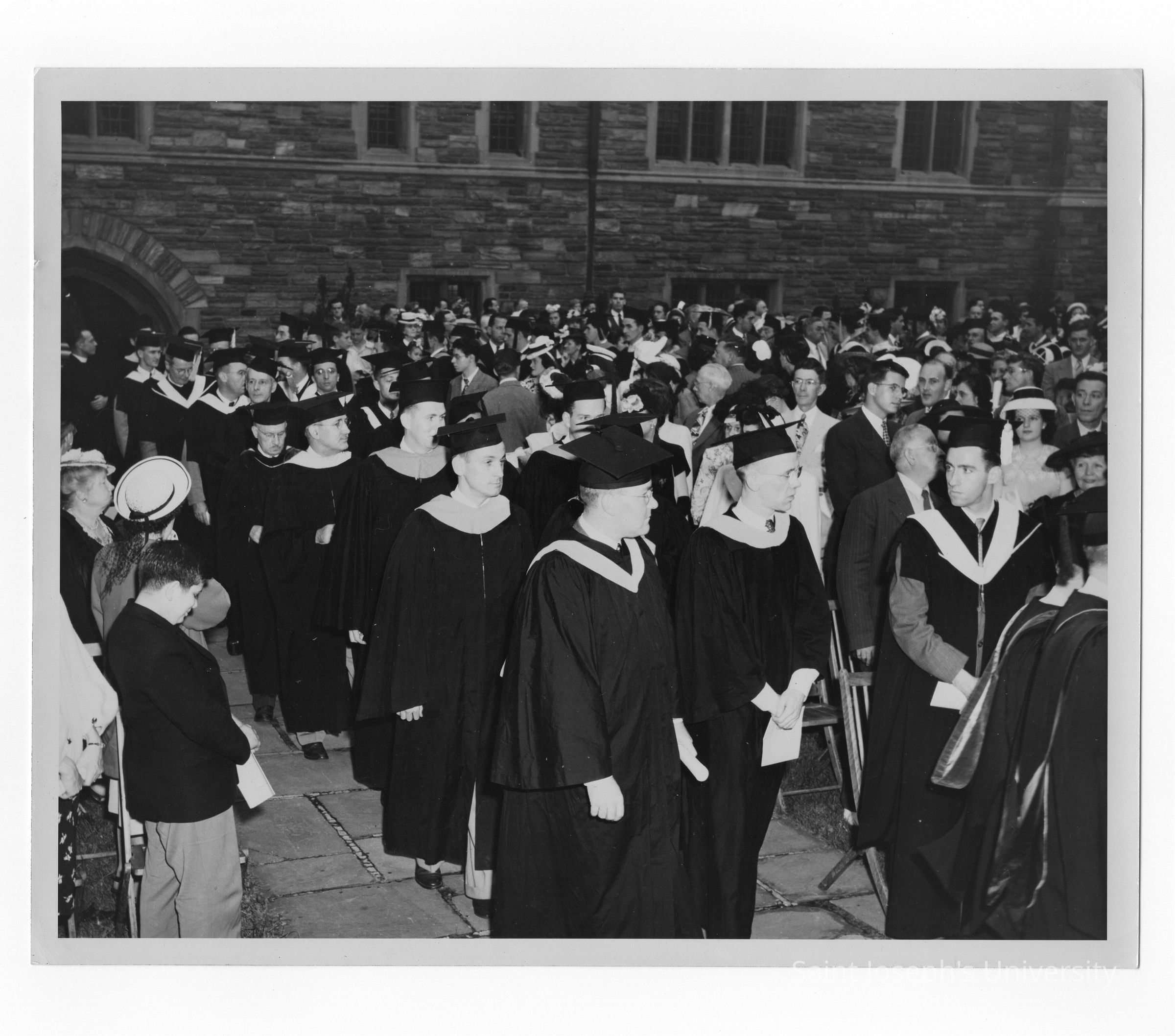 Students and faculty processing into Barbelin quadrangle during 1947 graduation/commencement ceremony.Entry/Object ID