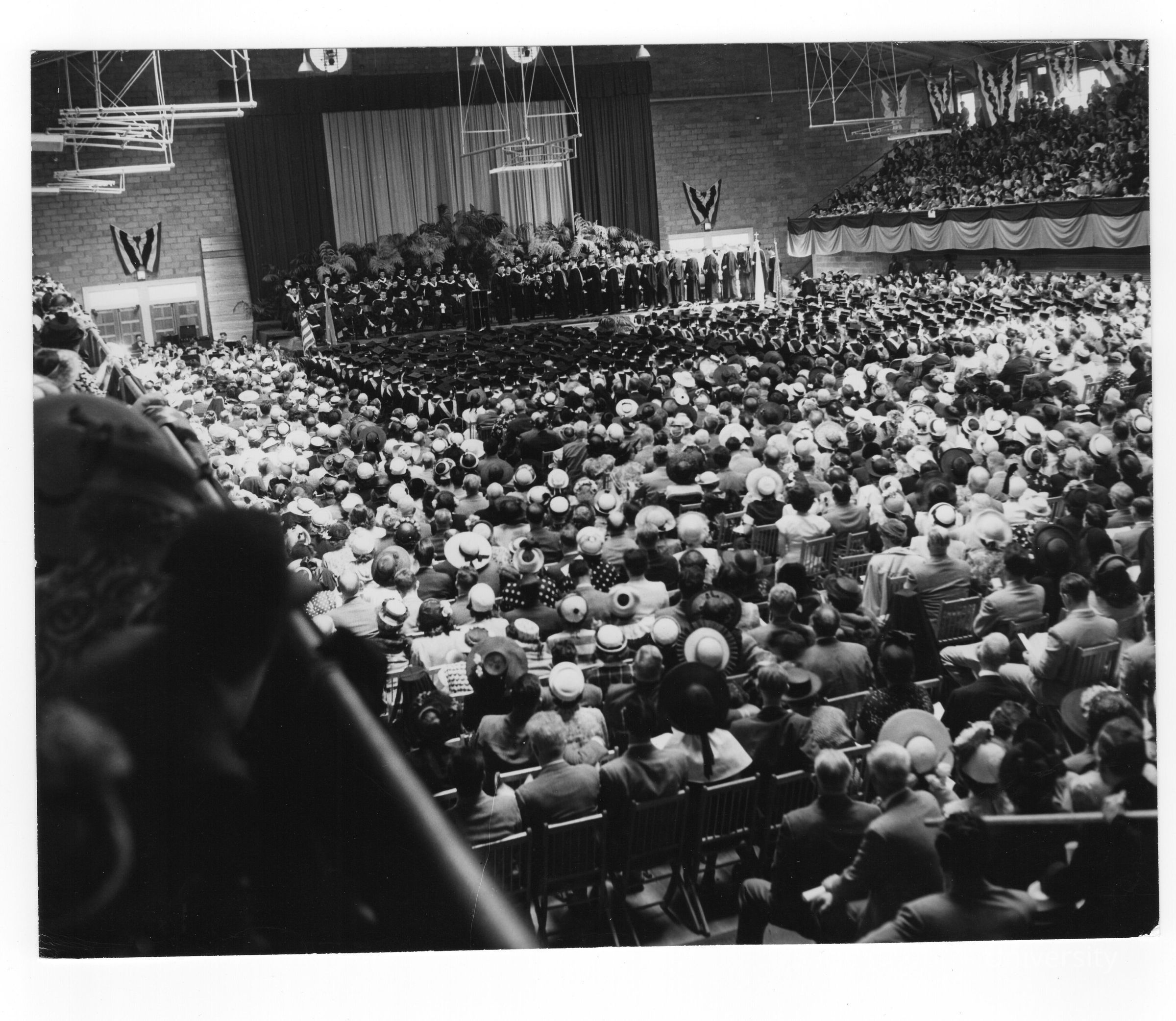 View of 1950 graduation/commencement ceremony in Field House.