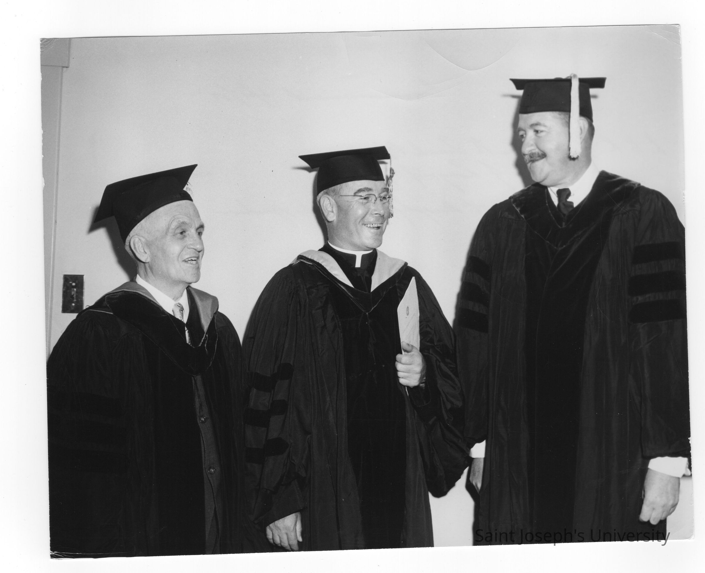 John J. Long, S.J. with honorary degree recipients Thomas K. Quirk and Thomas F. Murphy at 1950 graduation/commencement ceremony.