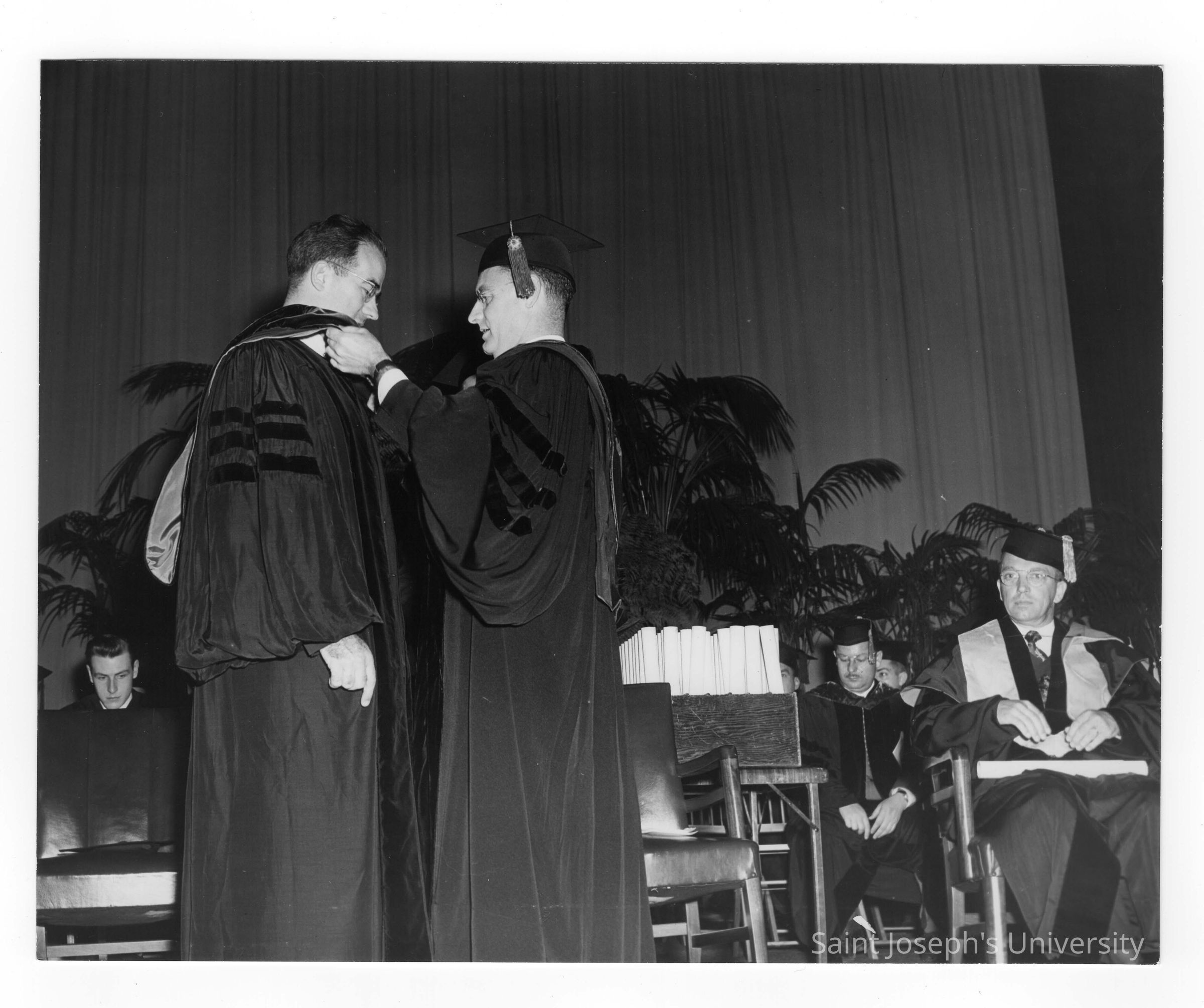 Edward G. Jacklin, S.J. bestowing honorary degree on Francis C. Nash during 1952 graduation/commencement ceremony.