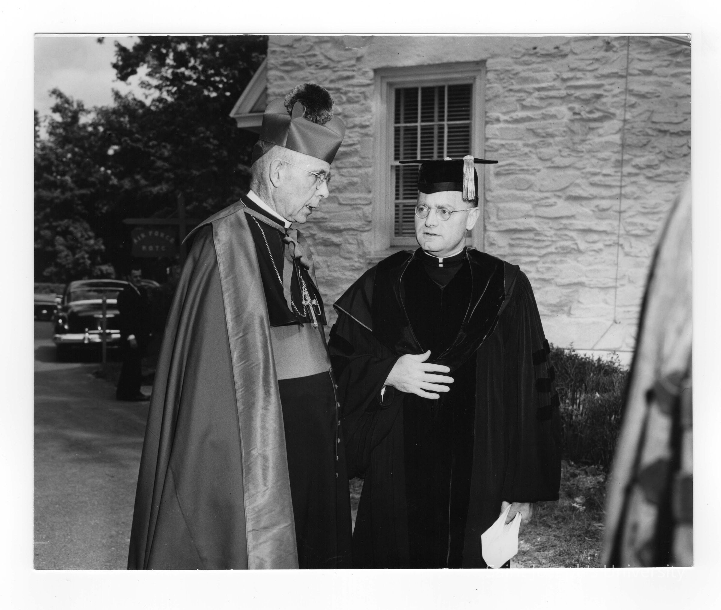 Edward G. Jacklin, S.J. with the Archbishop of Philadelphia, John F. O'Hara at 1954 graduation/commencement.