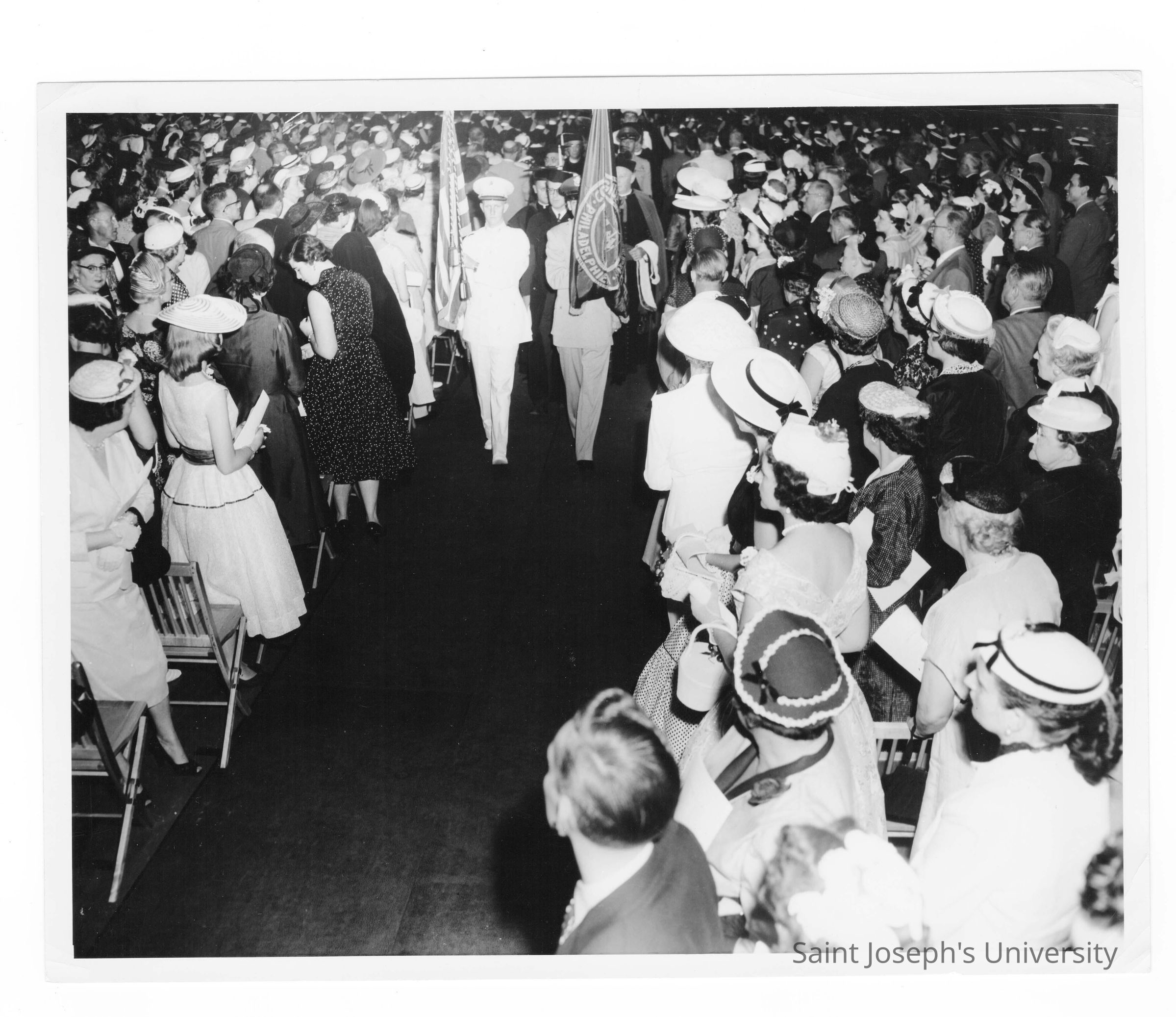 Recessional at end of 1955 graduation/commencement ceremony in Field House.
