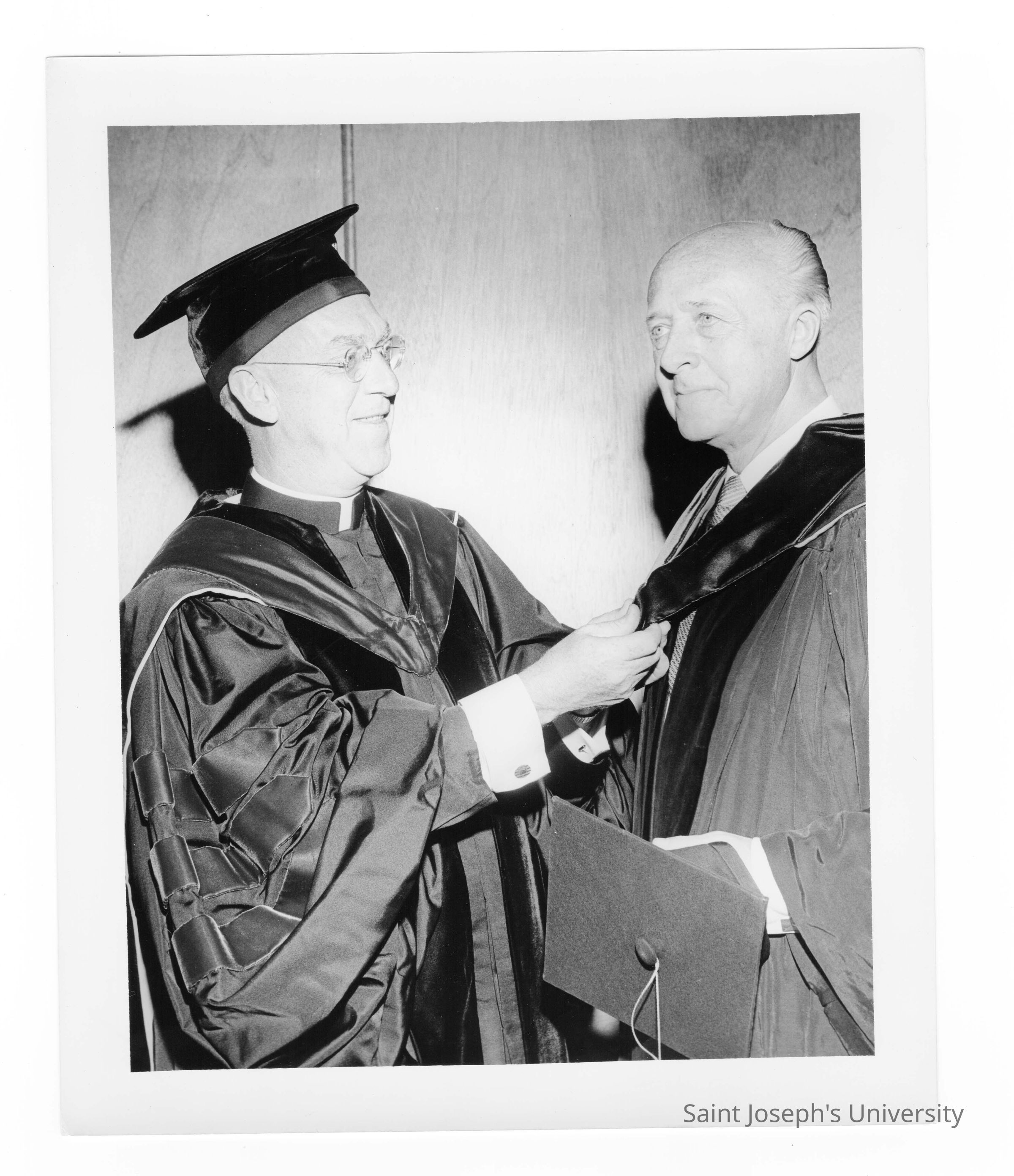 J. Joseph Bluett, S.J., with honorary degree recipient during 1959 graduation/commencement.