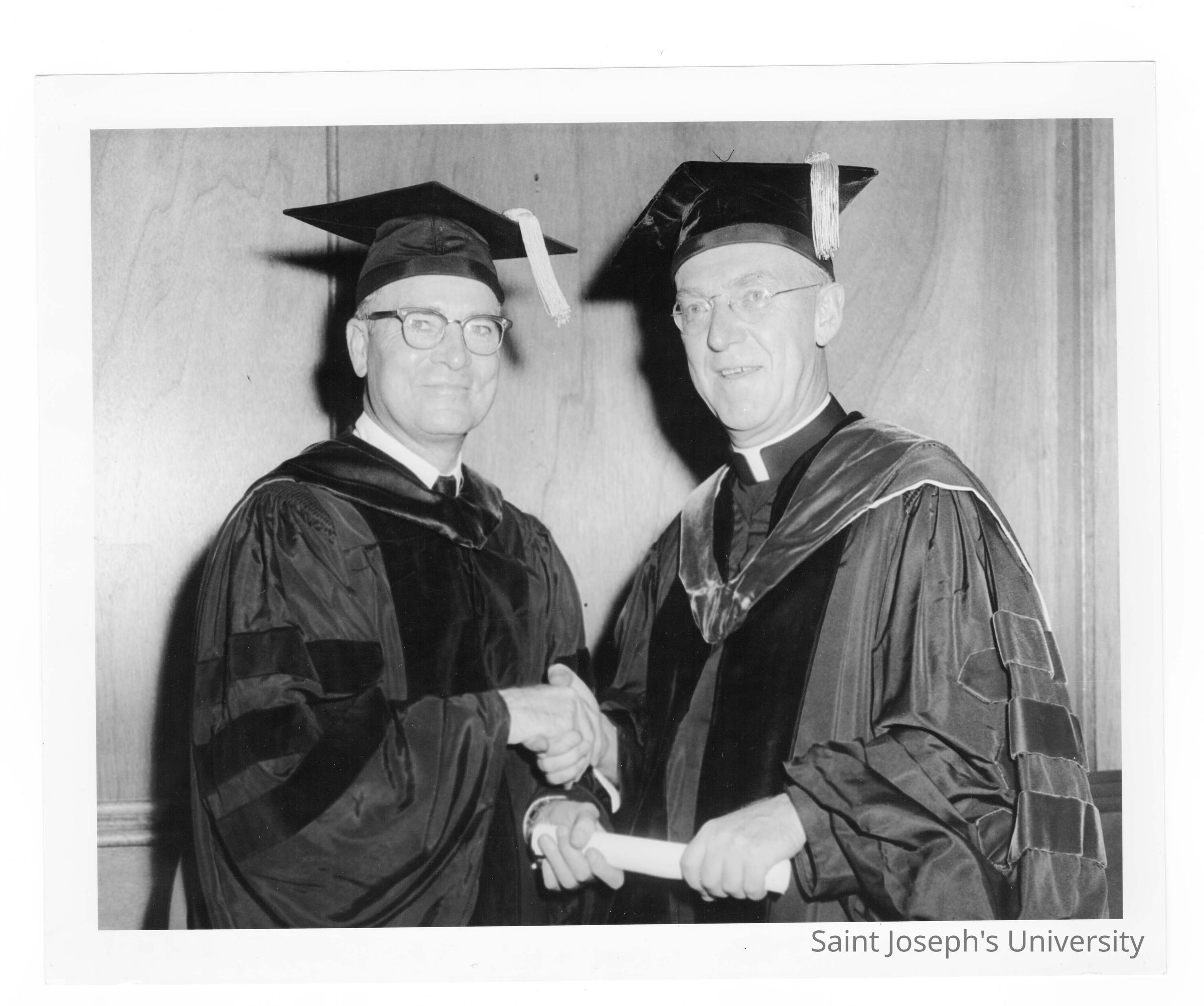 J. Joseph Bluett, S.J., with honorary degree recipeint Albert J. Nesbitt at October 1959 graduation/commencement.