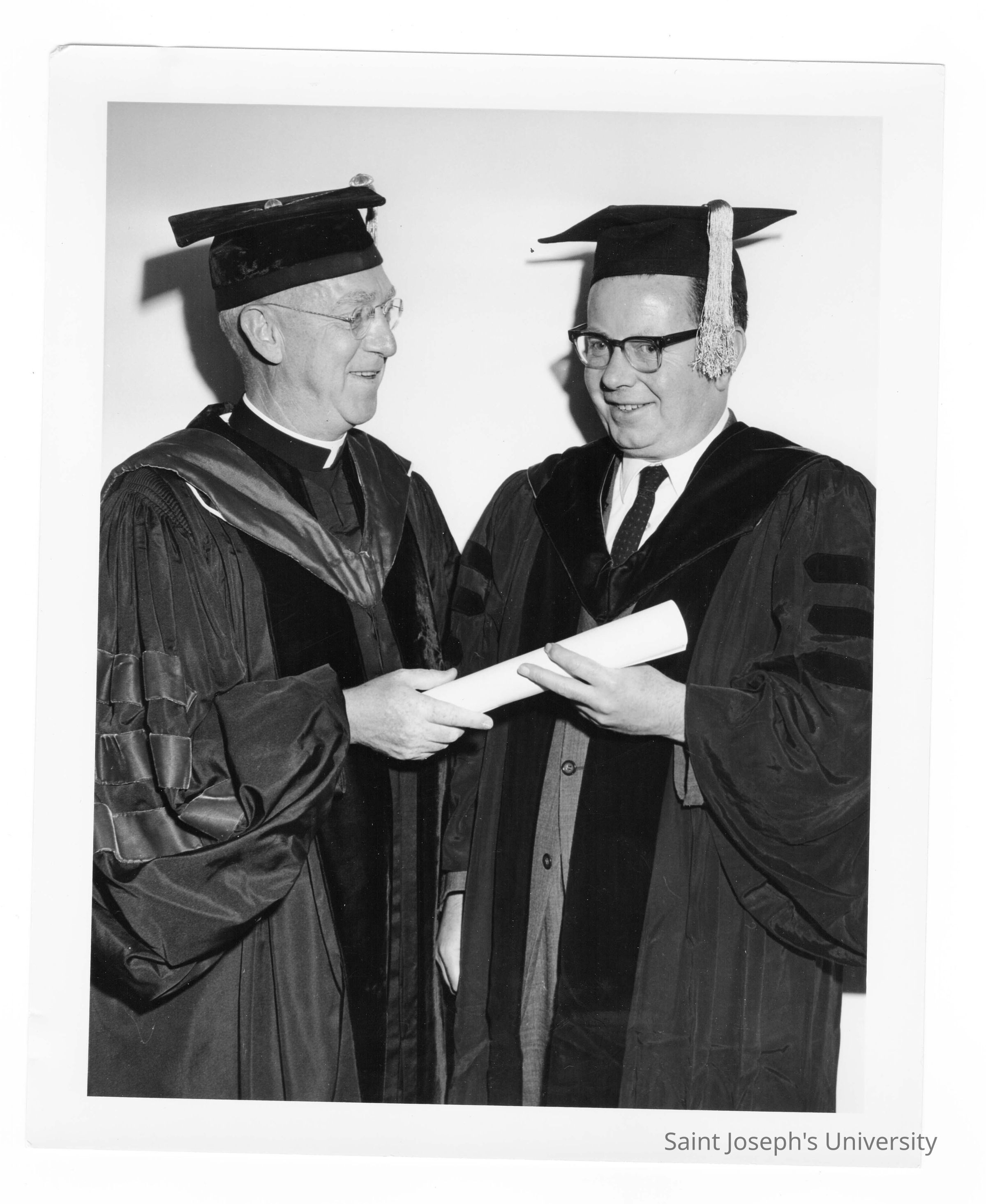 J. Joseph Bluett, S.J., with honorary degree recipient Richard J. Hughes during 1962 graduation/commencement.