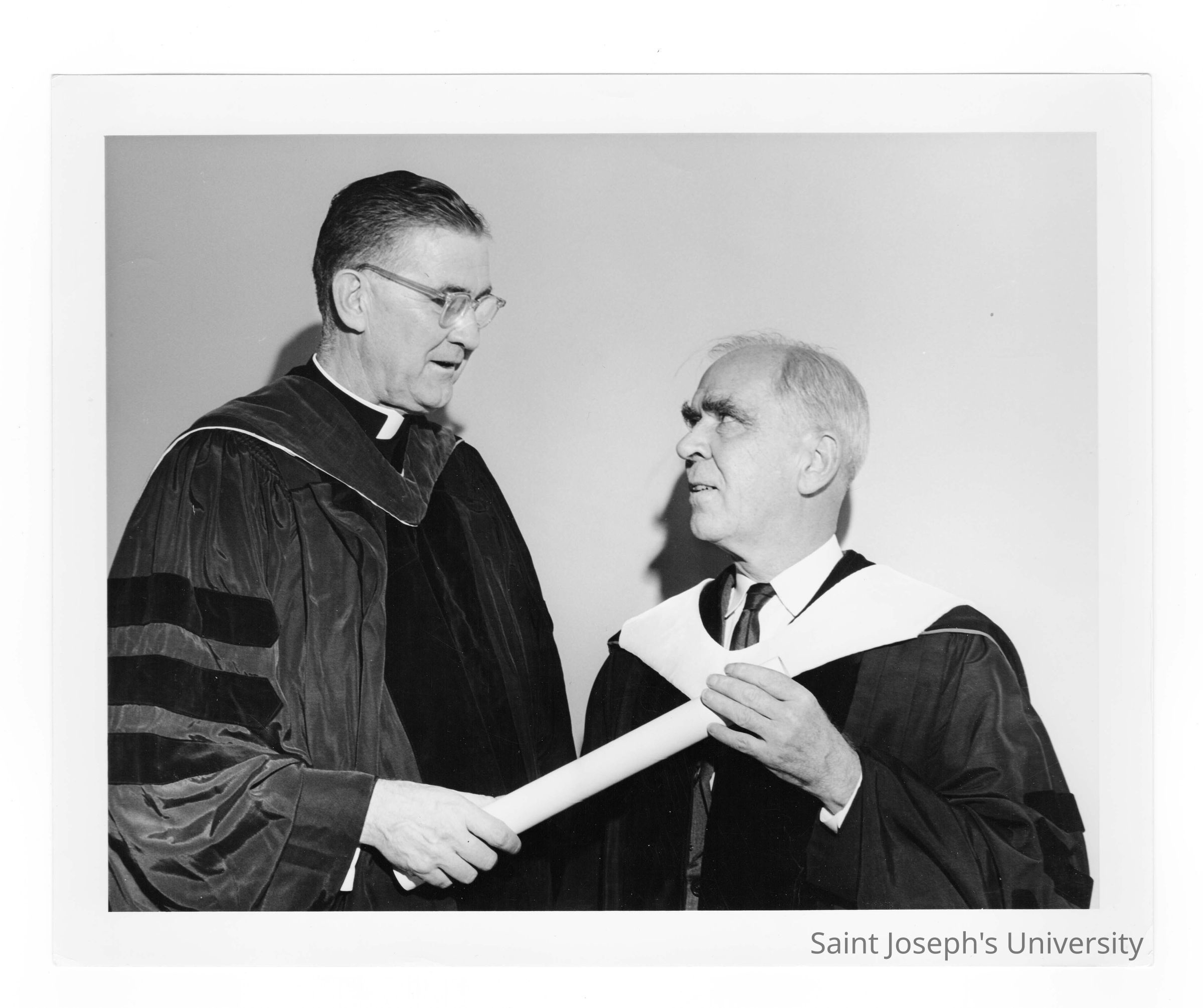 William F. Maloney, S.J. with honorary degree recipient, James Creese during October 1962 graduation/commencement.