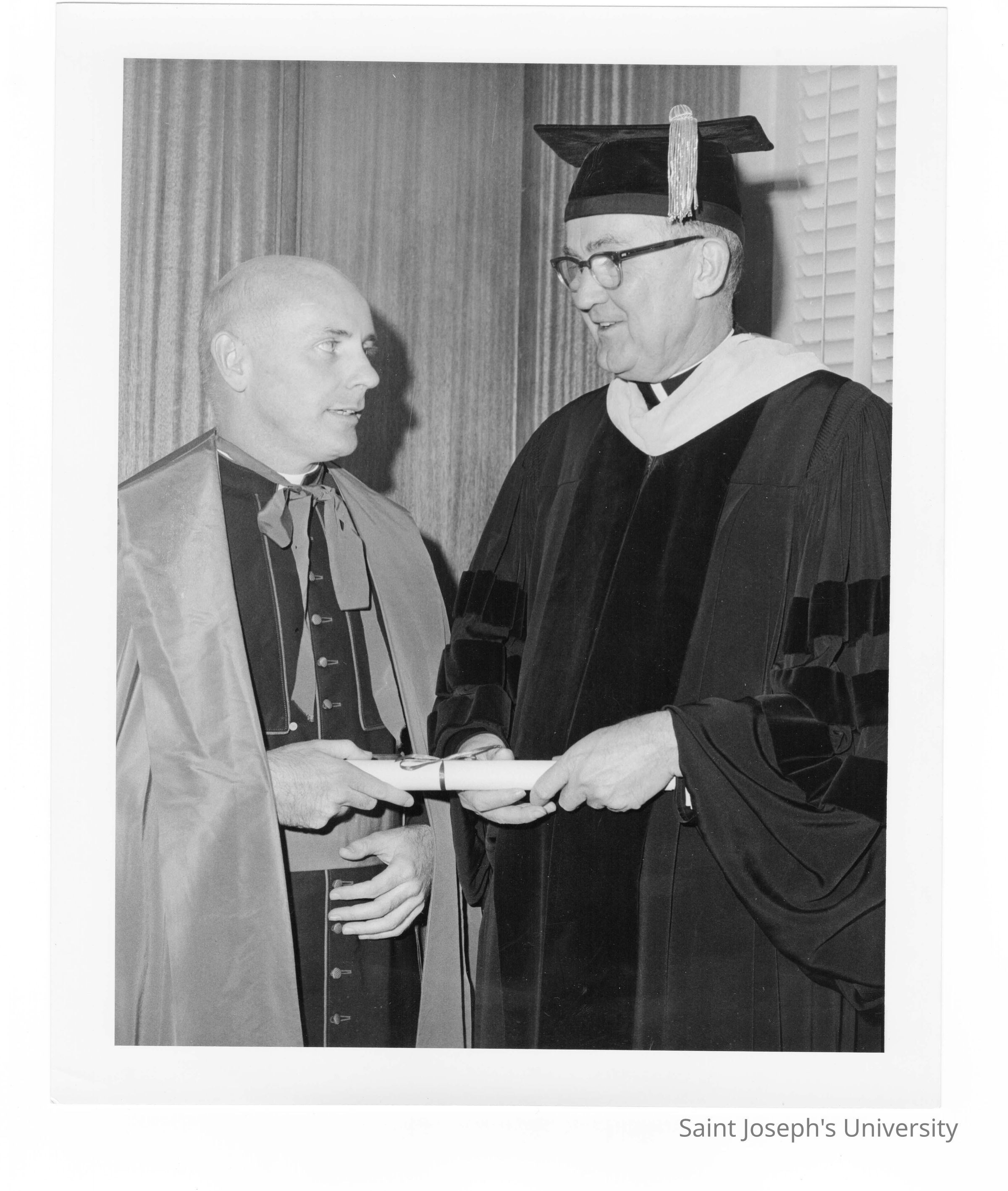 William F. Maloney, S.J., with honorary degree recipient, Monsignor Edward T. Hughes during October 1966 graduation/commencement.
