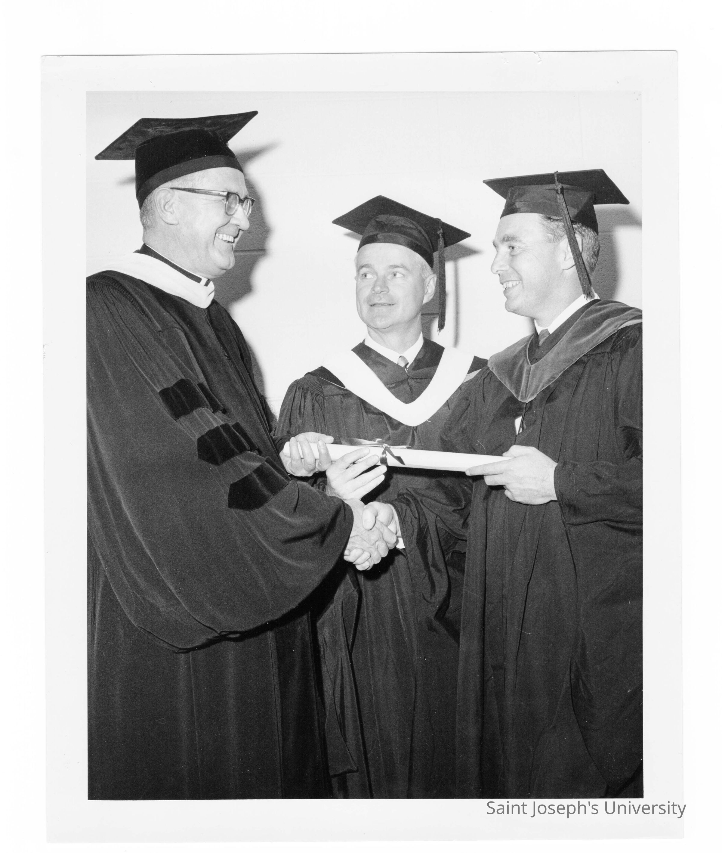 William F. Maloney, S.J., with two honorary degree recipients during 1967 graduation/commencement.