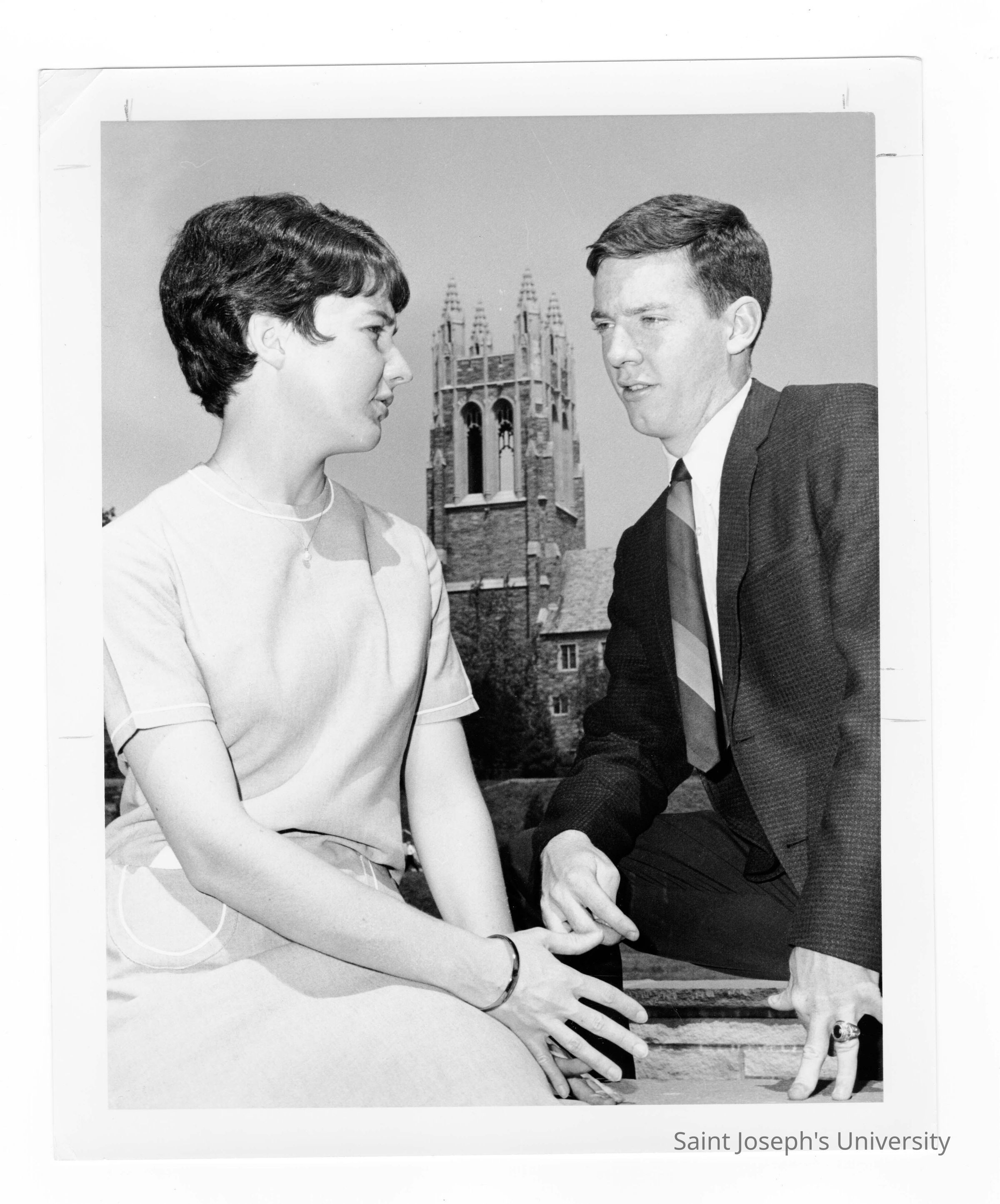 First brother and sister to graduate in same year; Joseph P. Breslin and Mary Anne Breslin during 1968 graduation/commencement. Students are the son and daughter of Joseph Breslin, class of 1929 and President of Law Alumni.Entry/Object ID