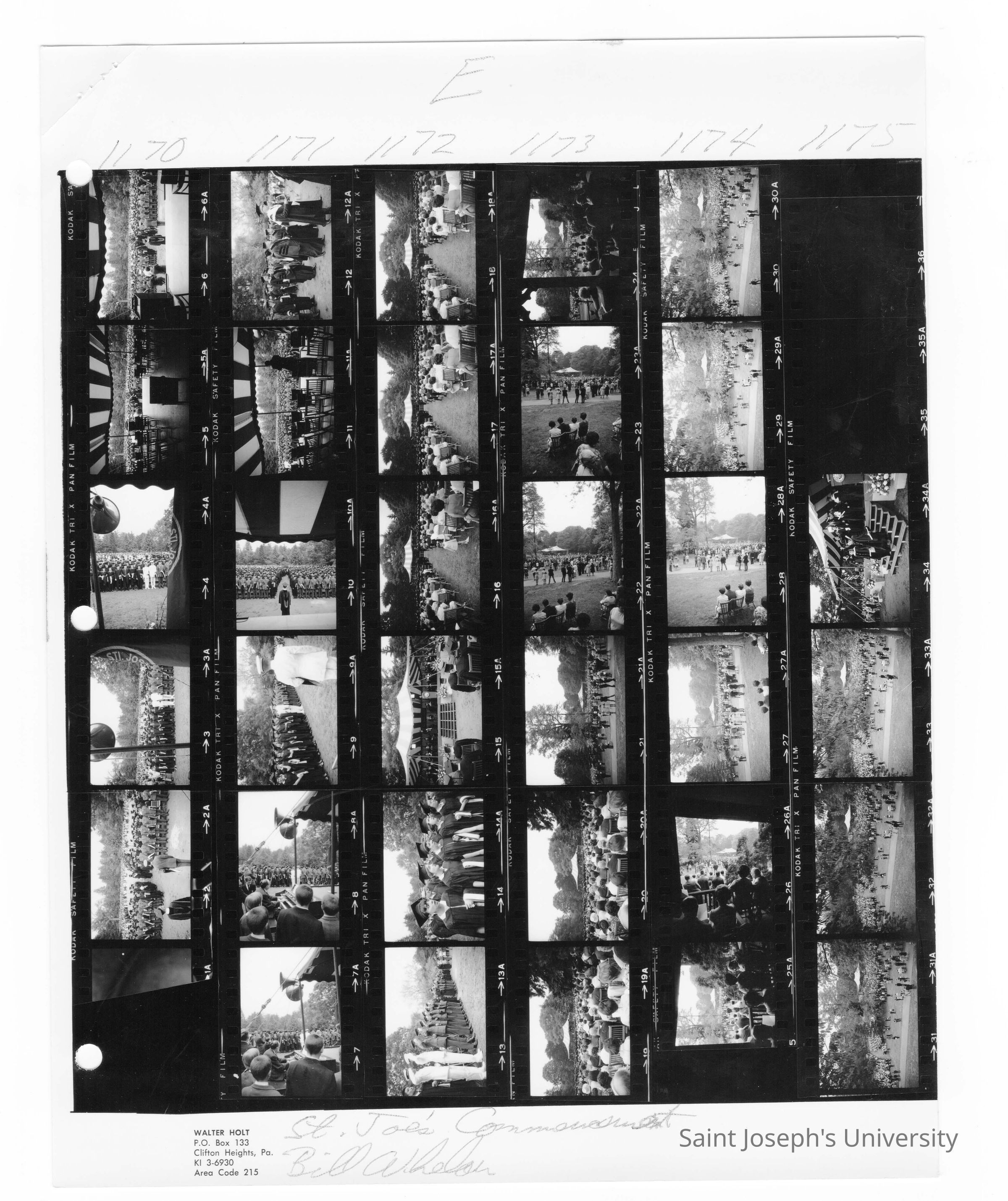 Views of 1968 graduation/commencement ceremony, the first time that ceremonies were held outside in twenty years.
