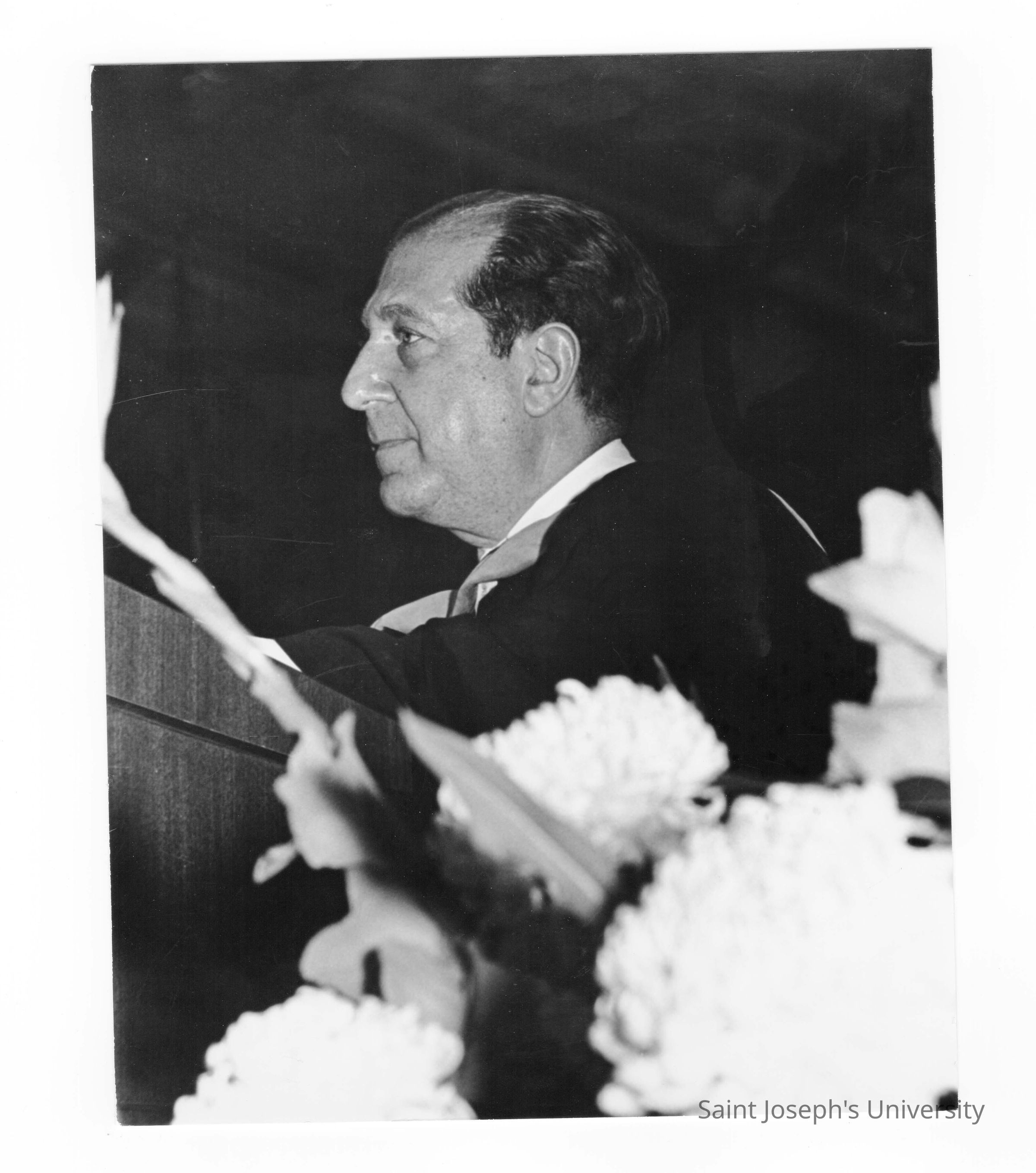 Honorary degree recipient and speaker, Fred Hechinger, addressing graduates during 1970 graduation/commencement.
