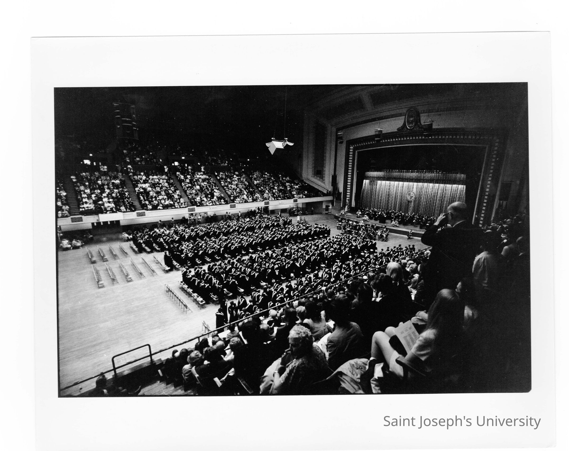 View of 1971 graduation/commencement in Convention Hall, Philadelphia Civic Center.