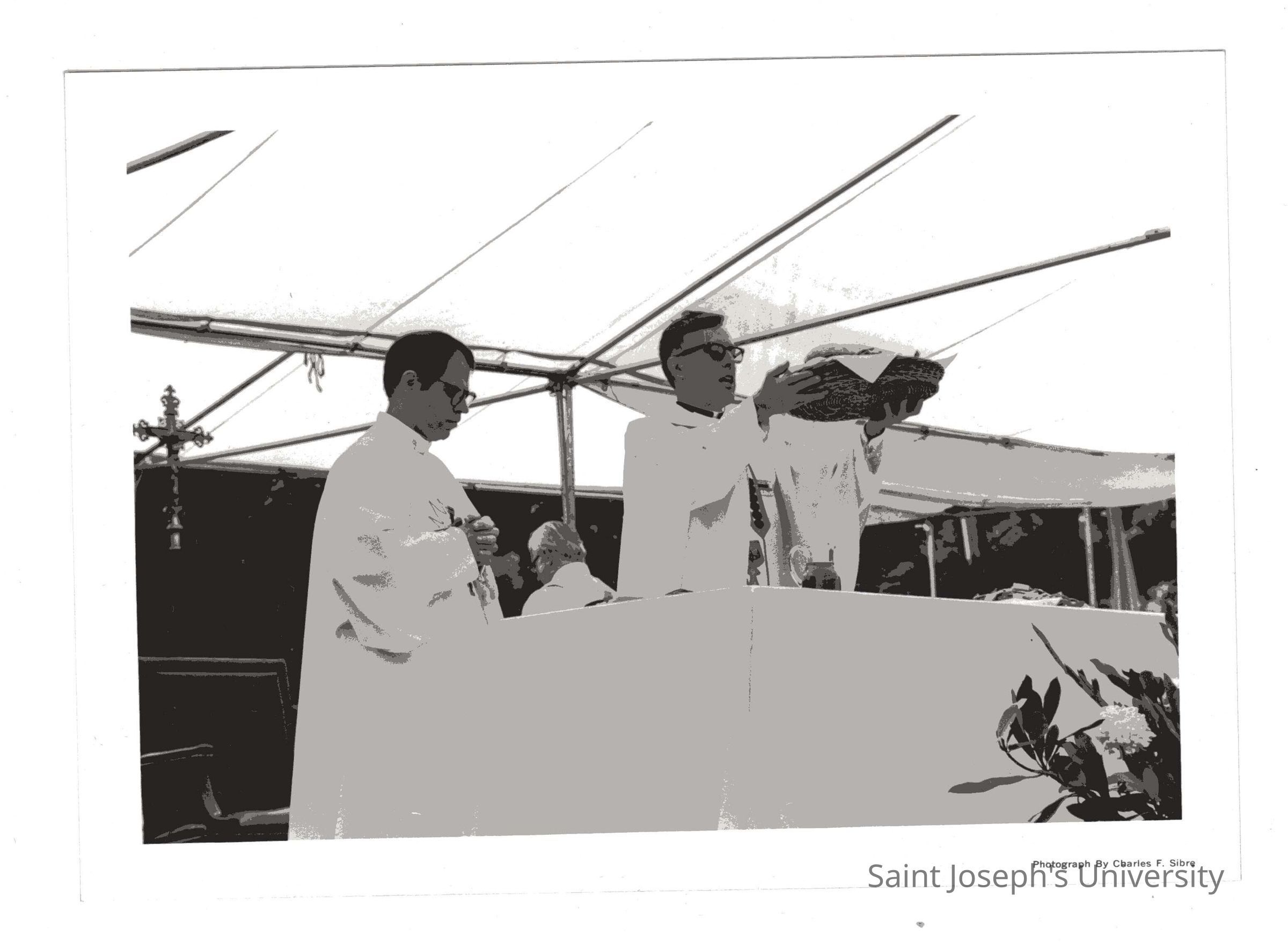 Donald I. MacLean, S.J., saying mass during Baccalaureate service, 1980 graduation/commencement.