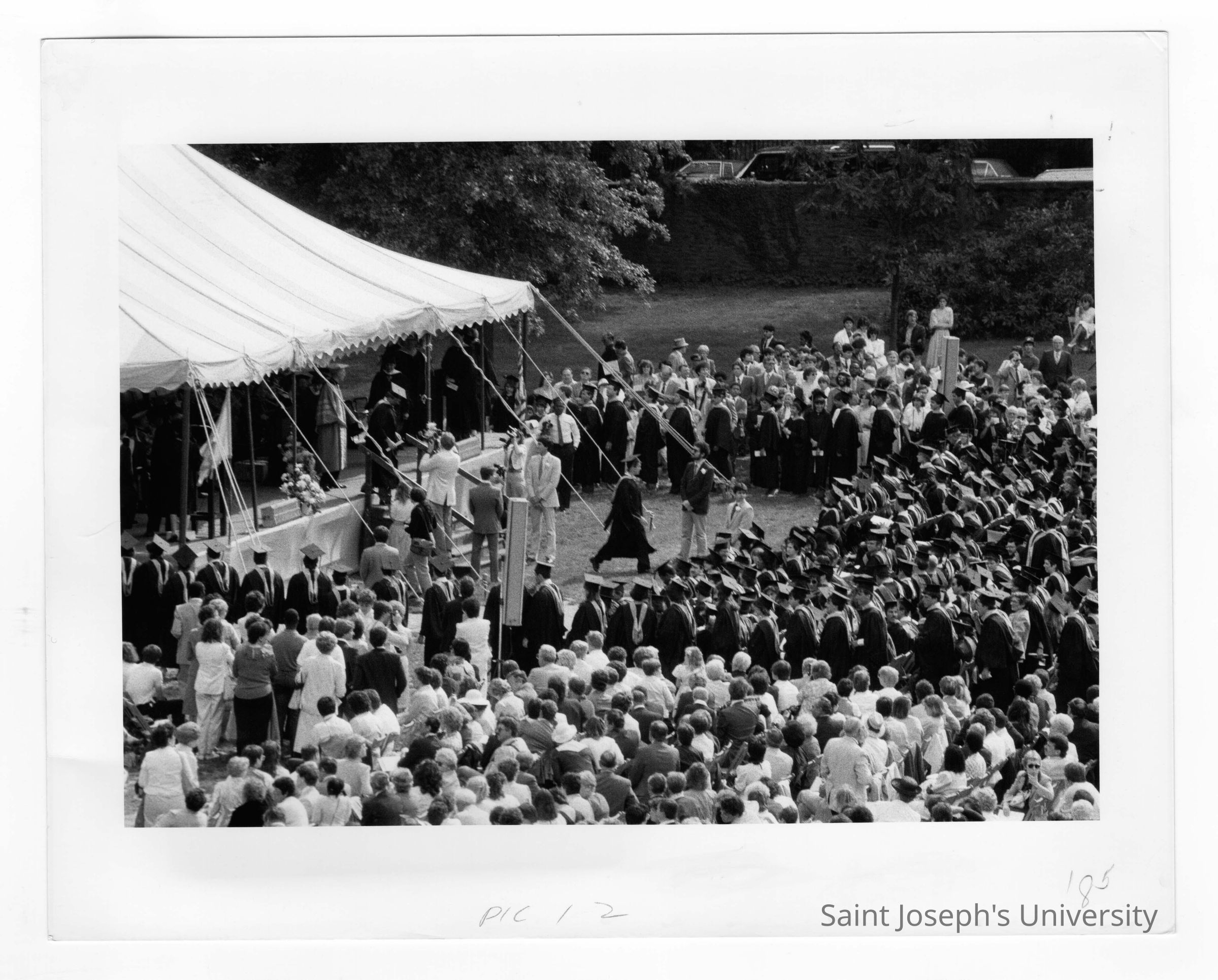 View of 1985 graduation/commencement on Gest Lawn.
