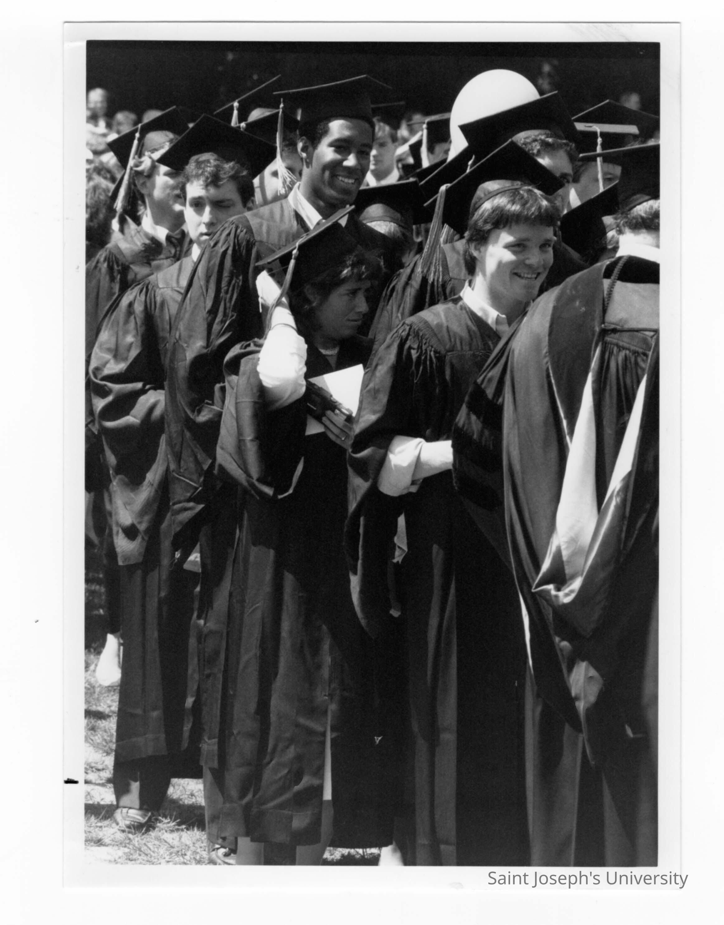Graduates processing onto Gest Lawn during graduation/commencement, c. 1985.