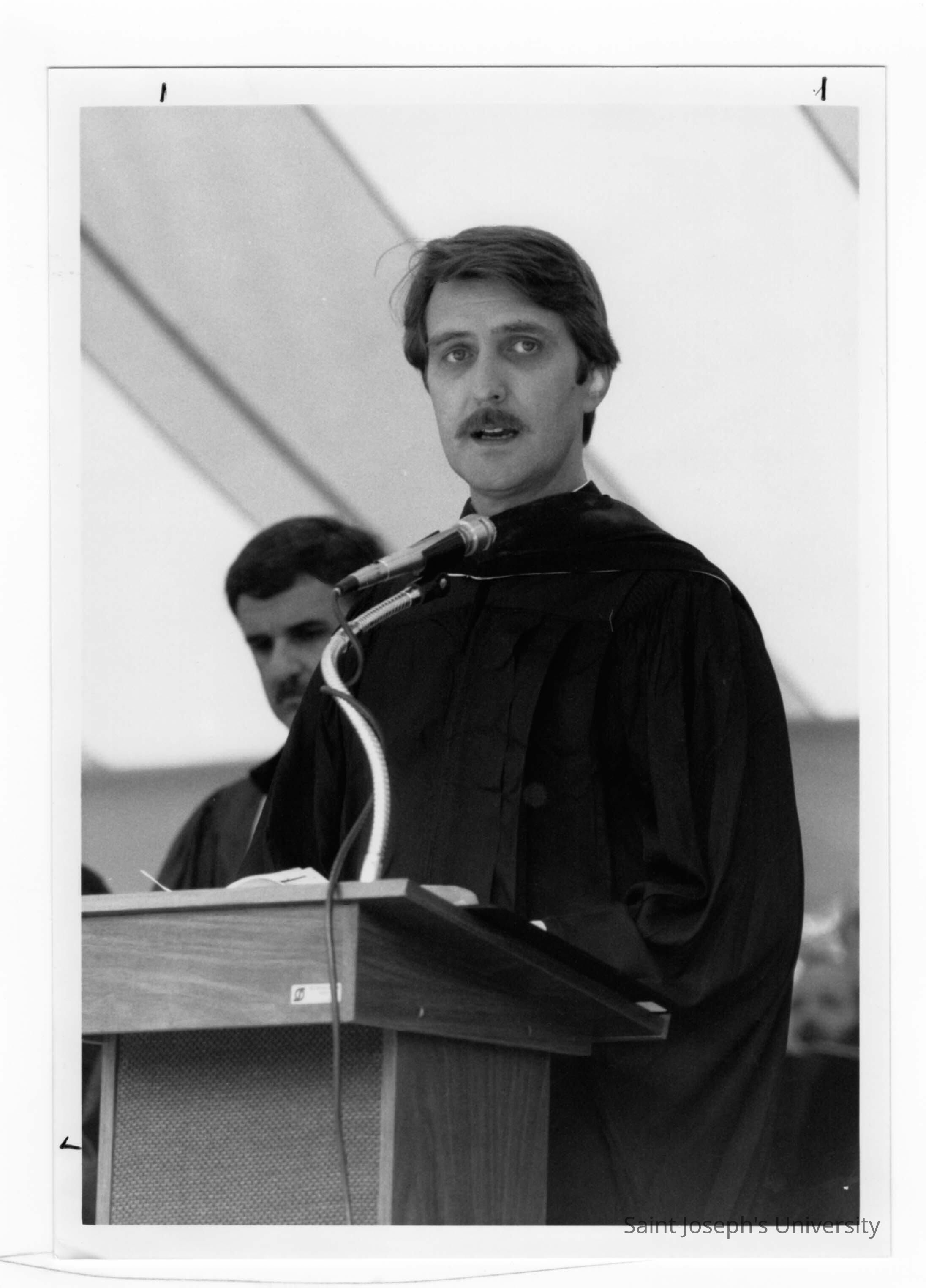 Faculty member at 1985 graduation/commencement.