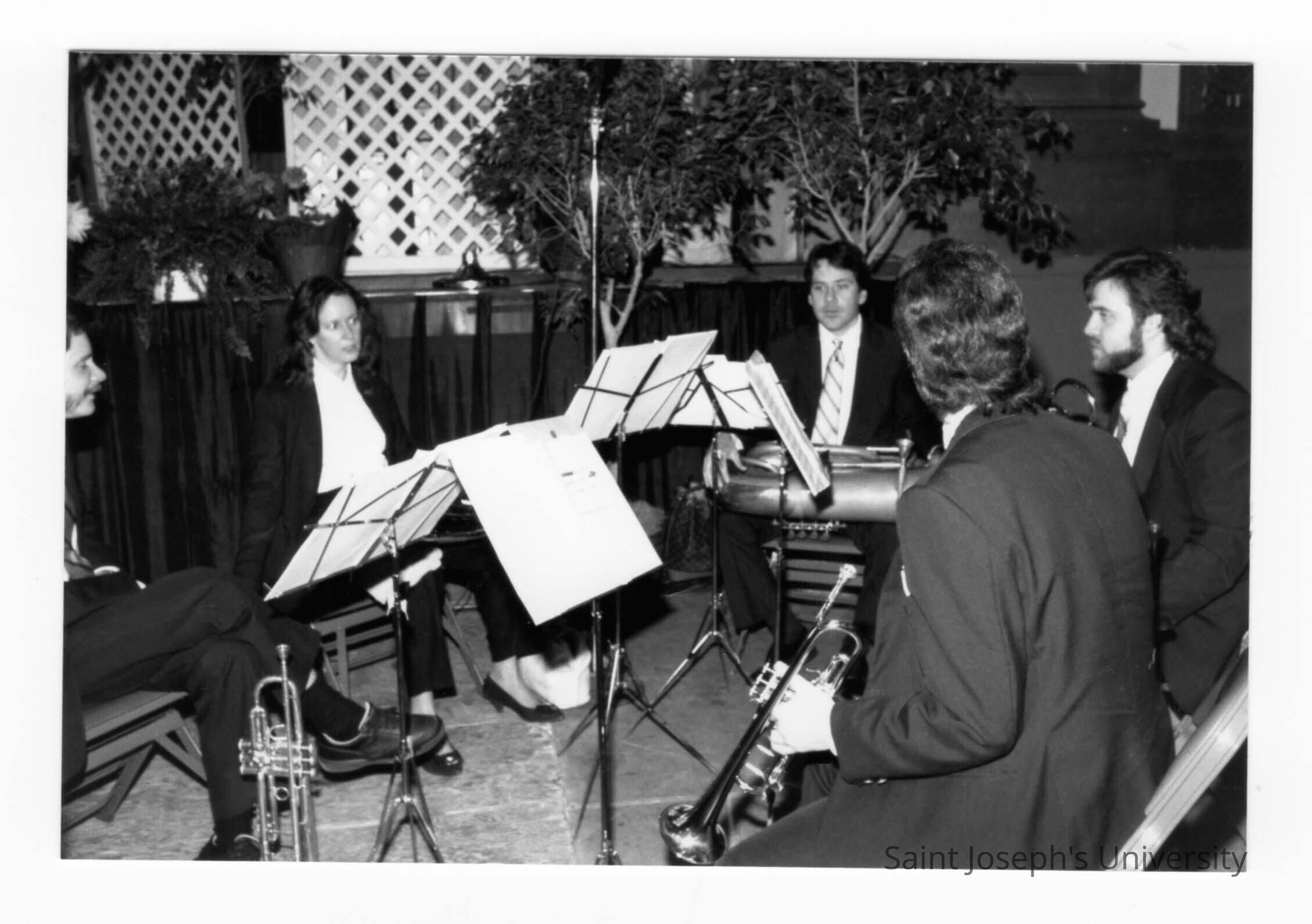 Musicians in orchestra pit of Convention Hall, Philadelphia Civic Center during 1990 graduation/commencement.