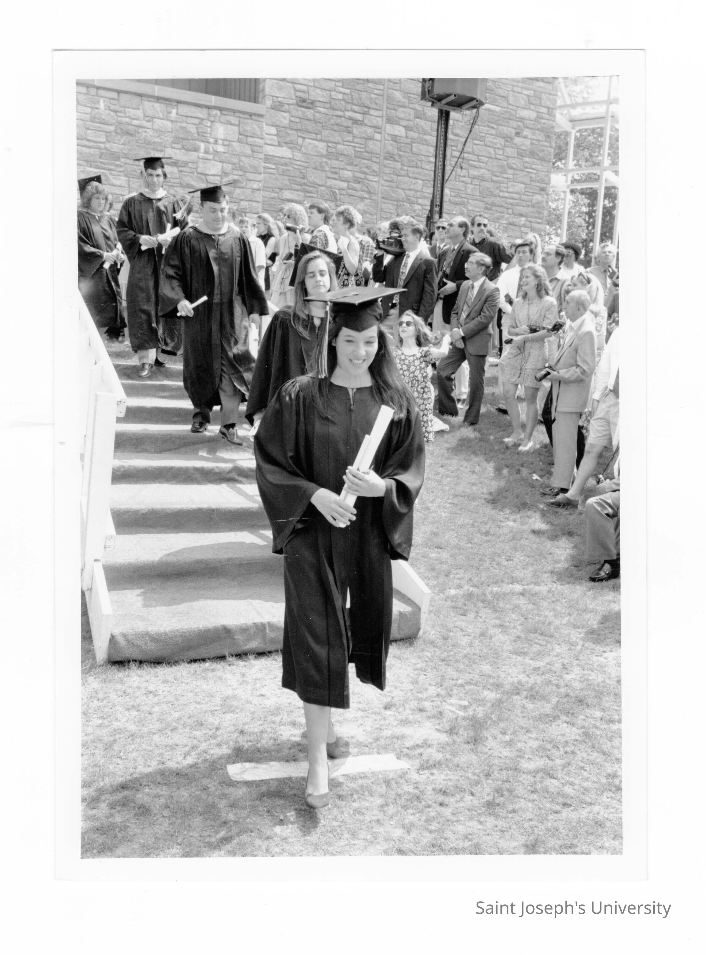 Graduates descending from stage after being awarded diplomas during 1993 graduation/commencement.