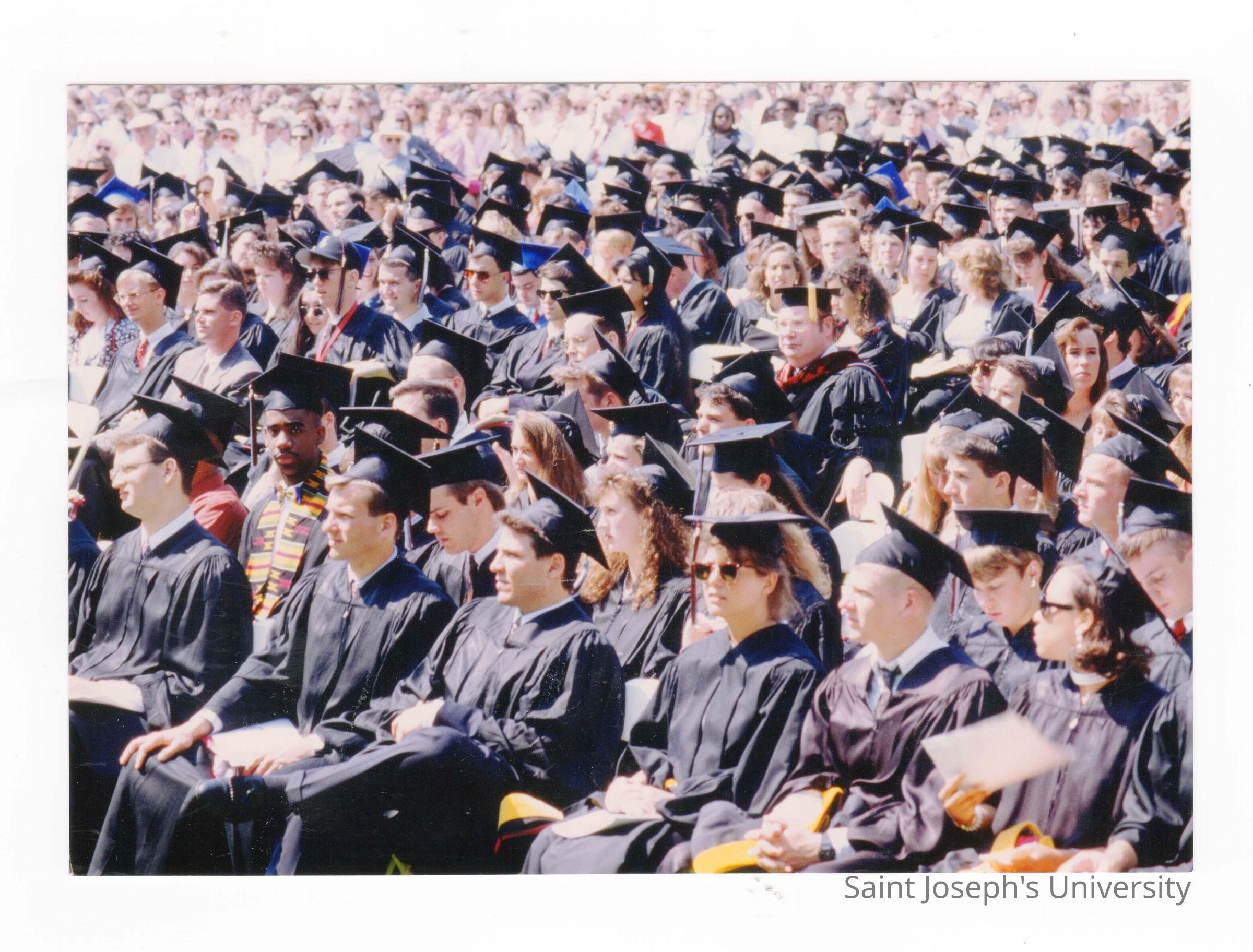 View of graduating students as 1993 graduation/commencement ceremony for master's degree students.