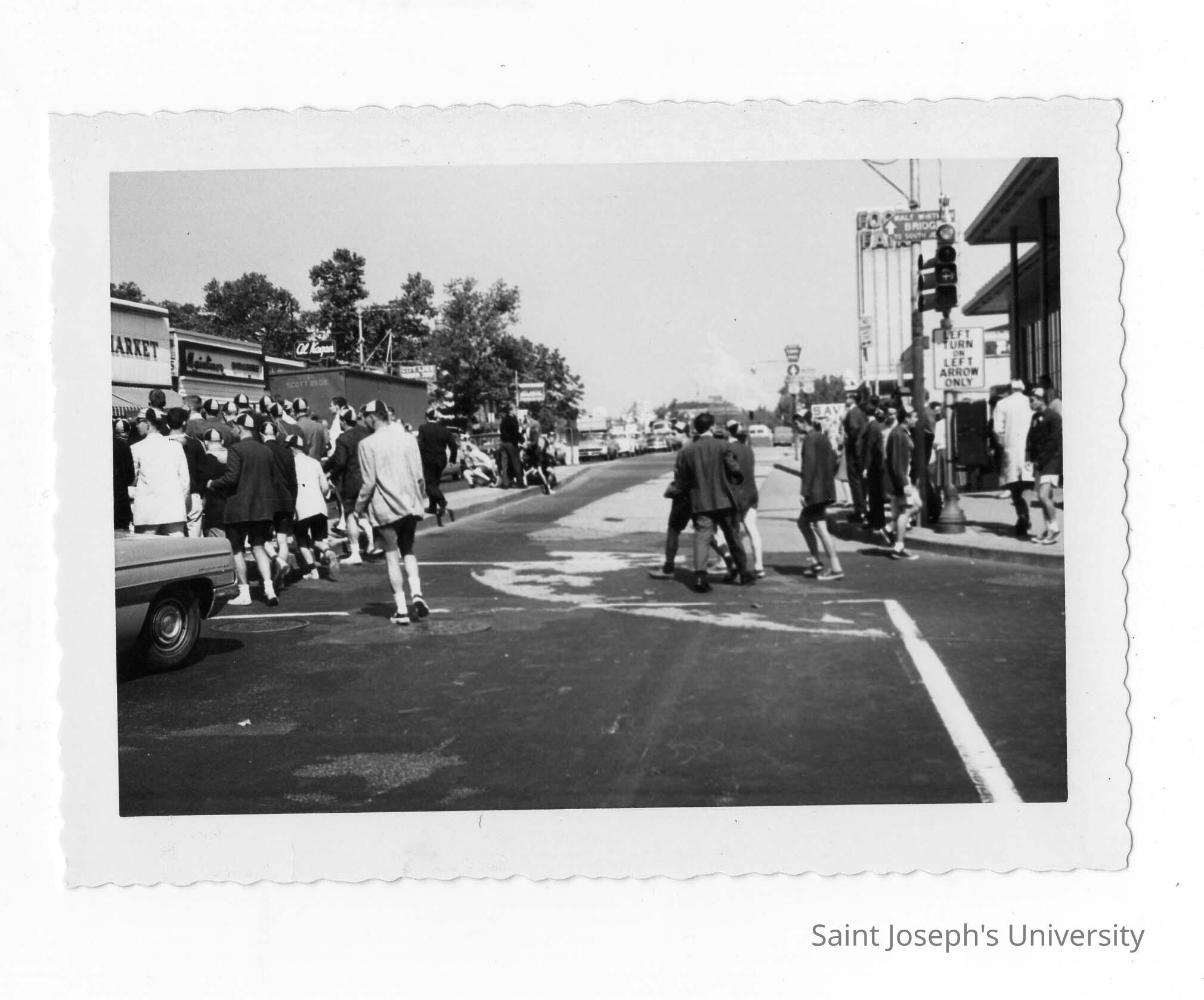 Freshman initiation activities on Juniper and Market Streets during Junior Week.
