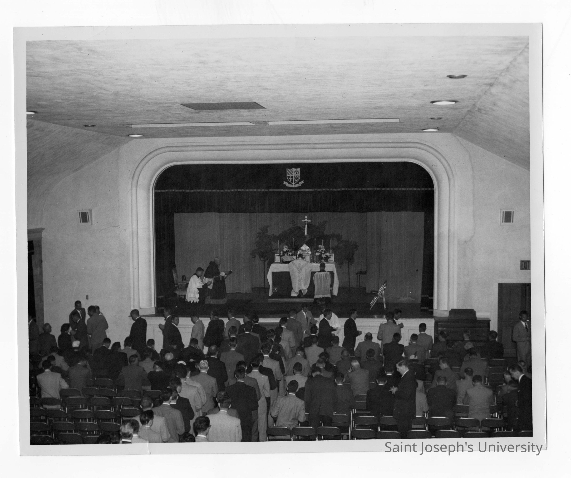 Students attending mass in Flanigan Auditorium.