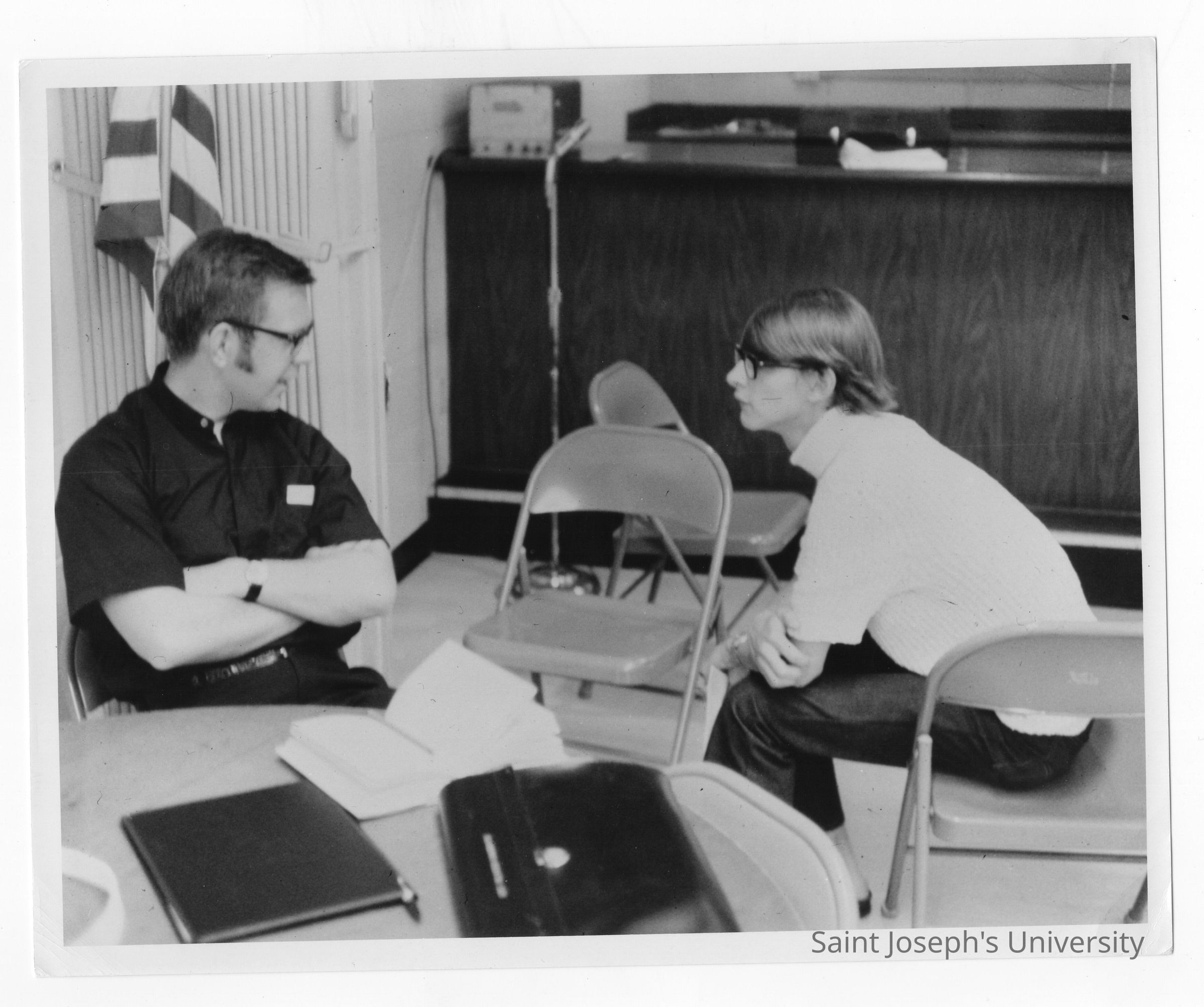 Student, Joseph Forish, and Rev. Francis Cosgrove, Director of Youth Activities in Mississippi, discuss the Peace and Human Development community service/outreach summer project in Mississippi.