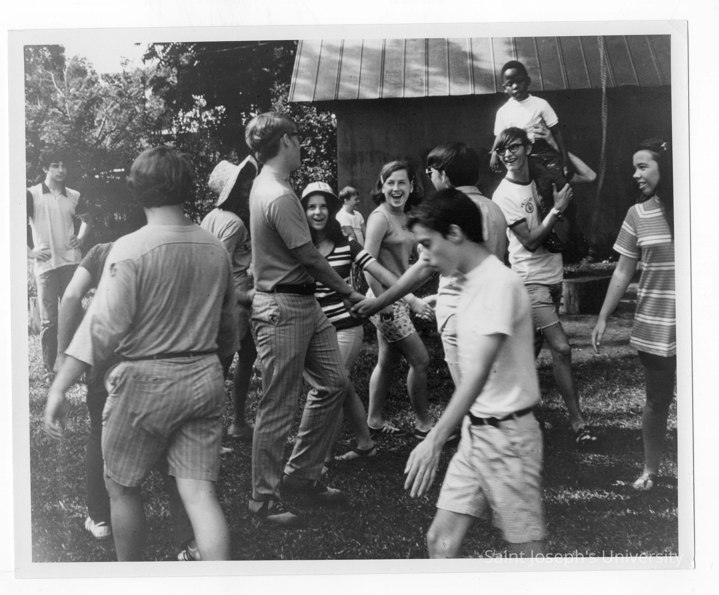 Students with children on playground as part of Mississippi summer project, a community service/outreach program (?)