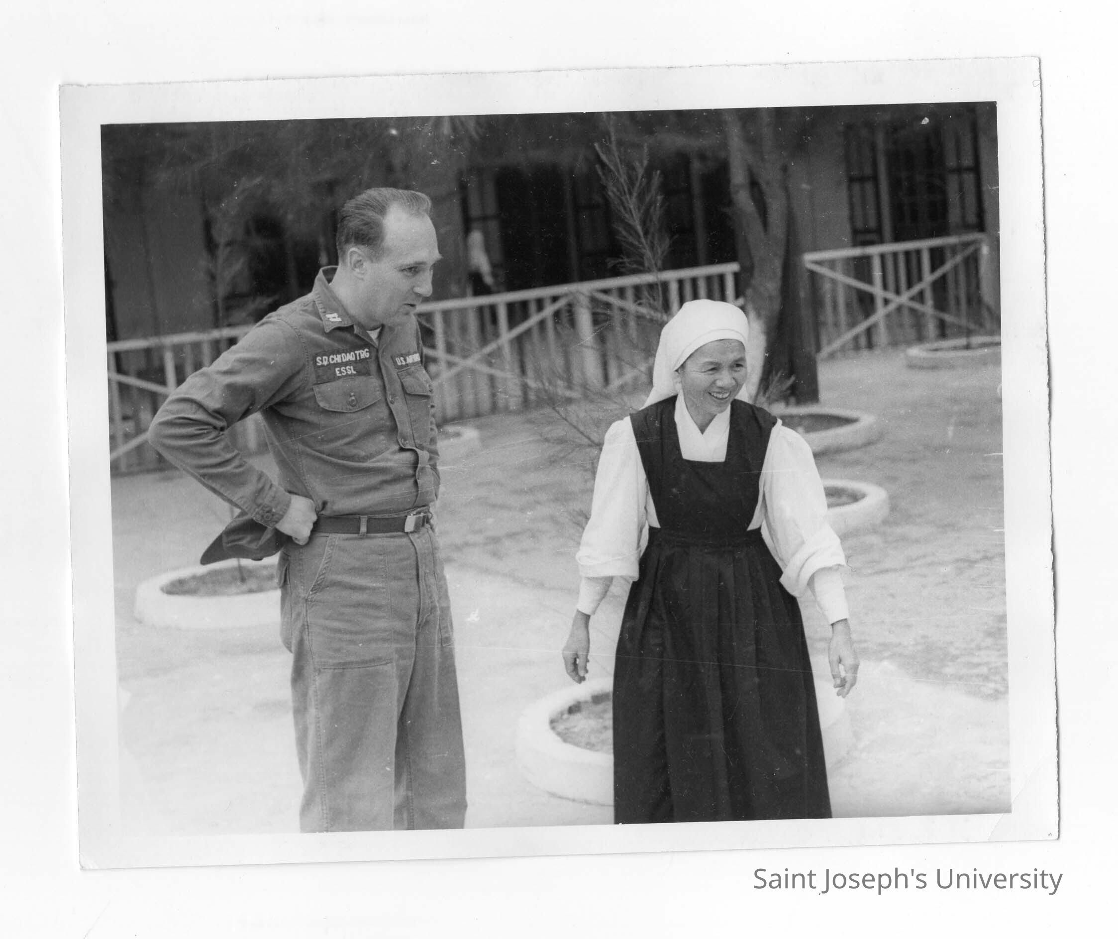 U.S. soldier with Vietnamese nun, Vietnam Orphanage project.
