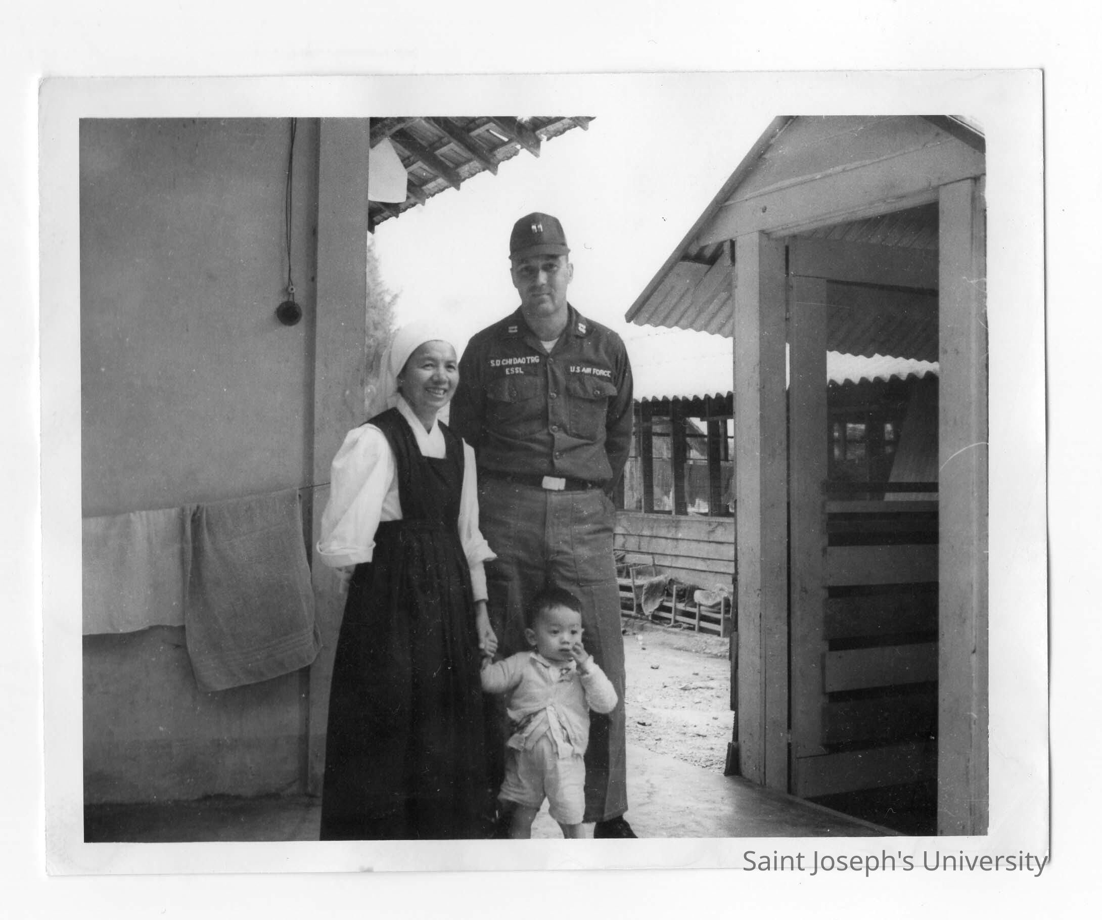 U.S. soldier with Vietnamese child and Vietnamese nun, Vietnam Orphanage project.