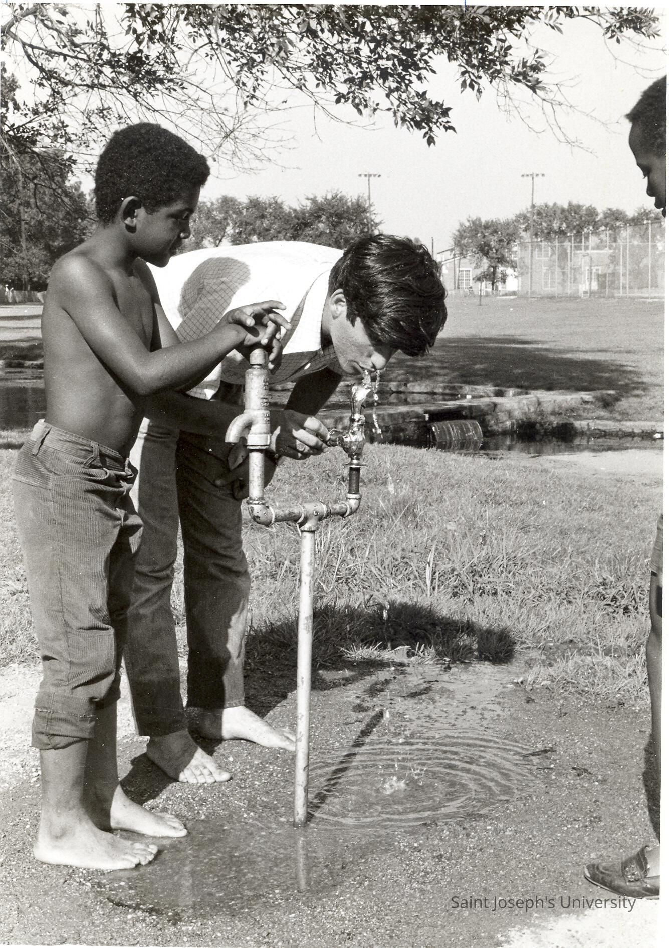 Mike DiBerardinis (?) working with children in recreation program as part of summer community service/outreach program in The House or SJC Commune at 17th and Girard Streets, Philadelphia.