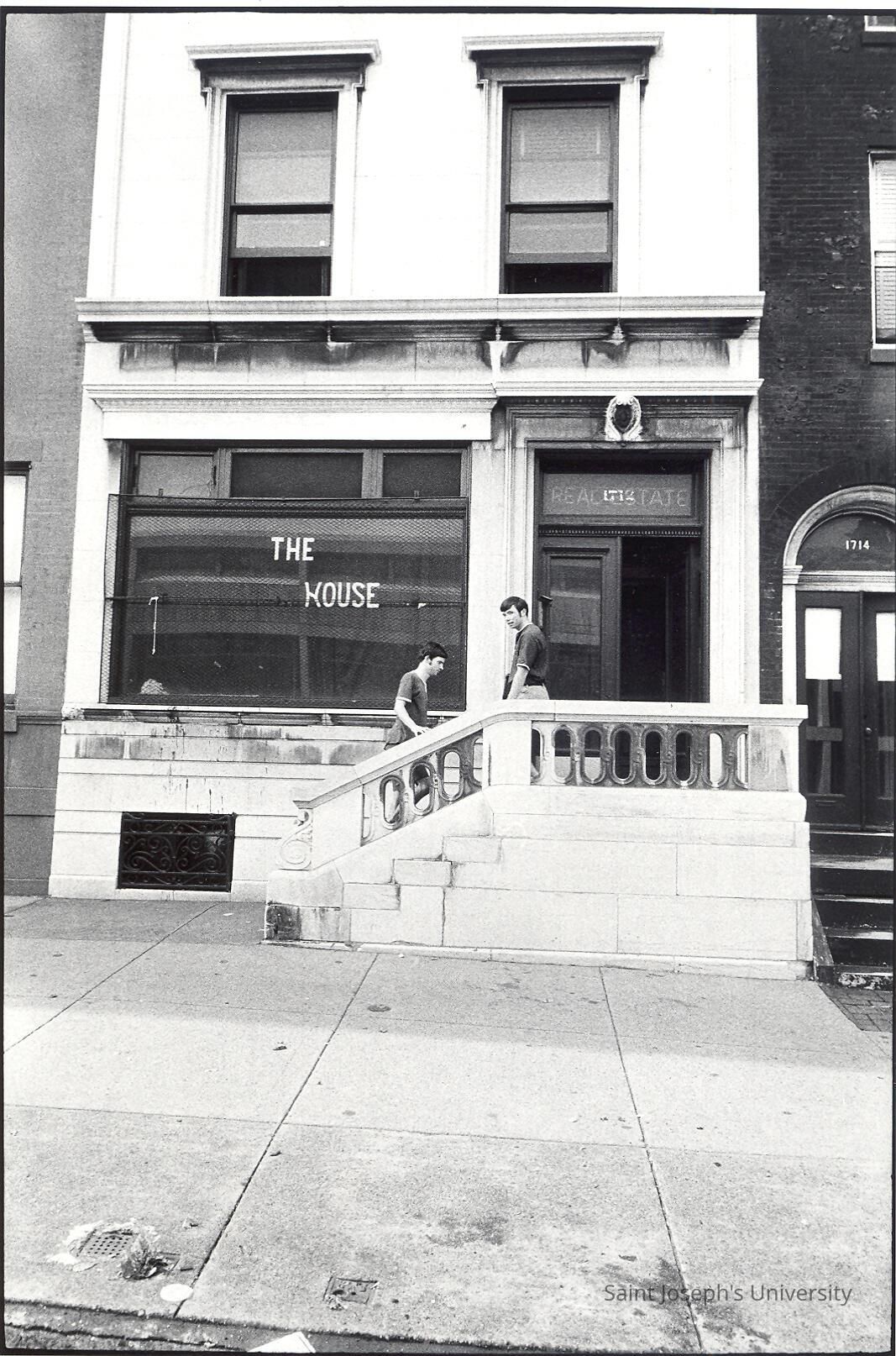 Two students in front of "The House" or SJC Commune at 17th and Girard Streets in Philadelphia as part of summer outreach/community service project.