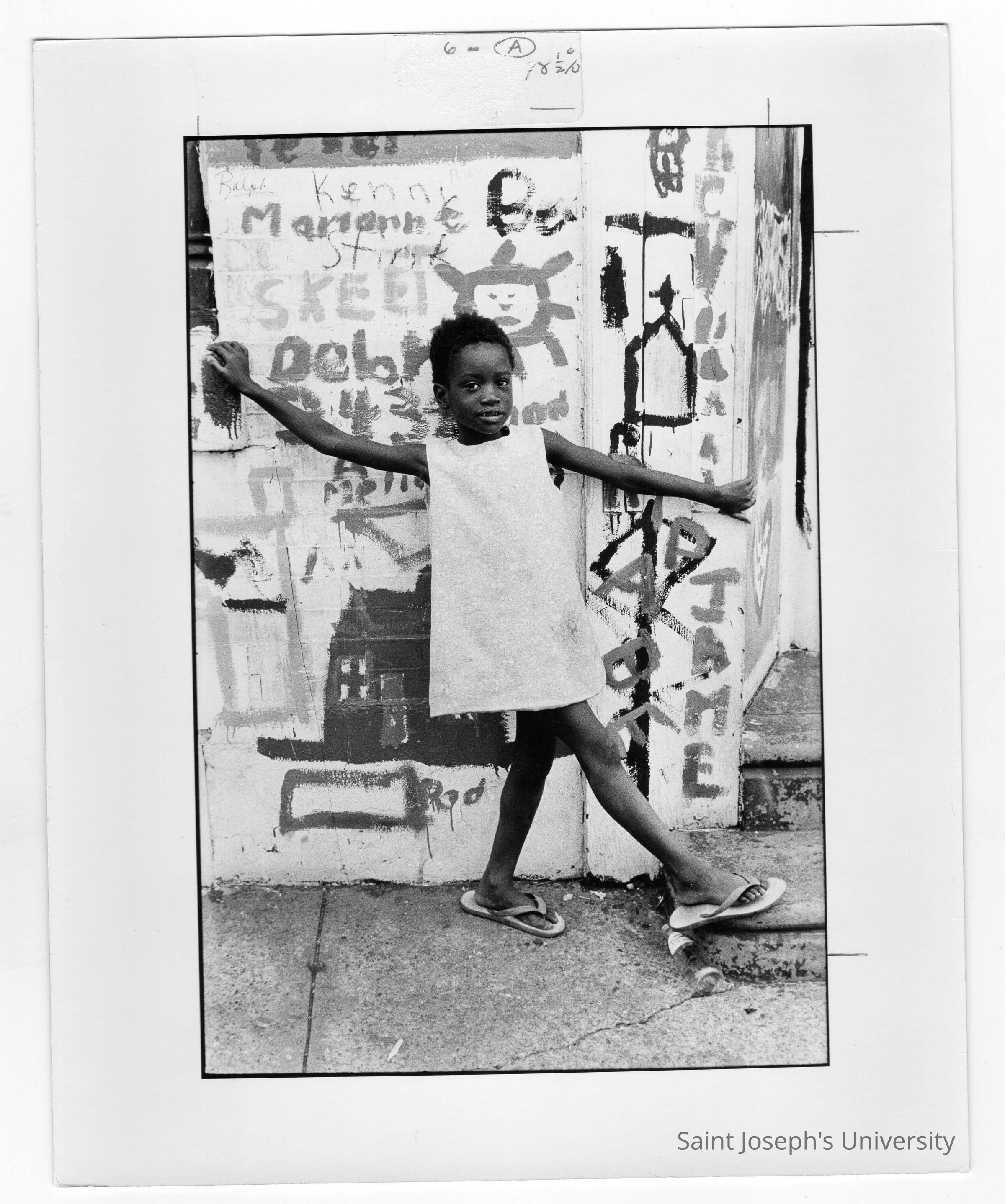 Photograph of young girl living near "The House" or SJC Commune at 17th and Girard Streets, Philadelphia.