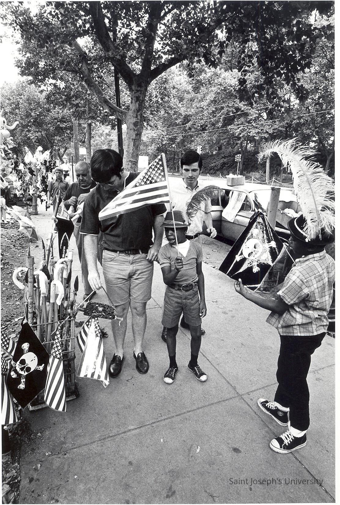 Students from "The House" or SJC Commune at 17th and Girard Streets, Philadelphia, with neighborhood children at street fair.