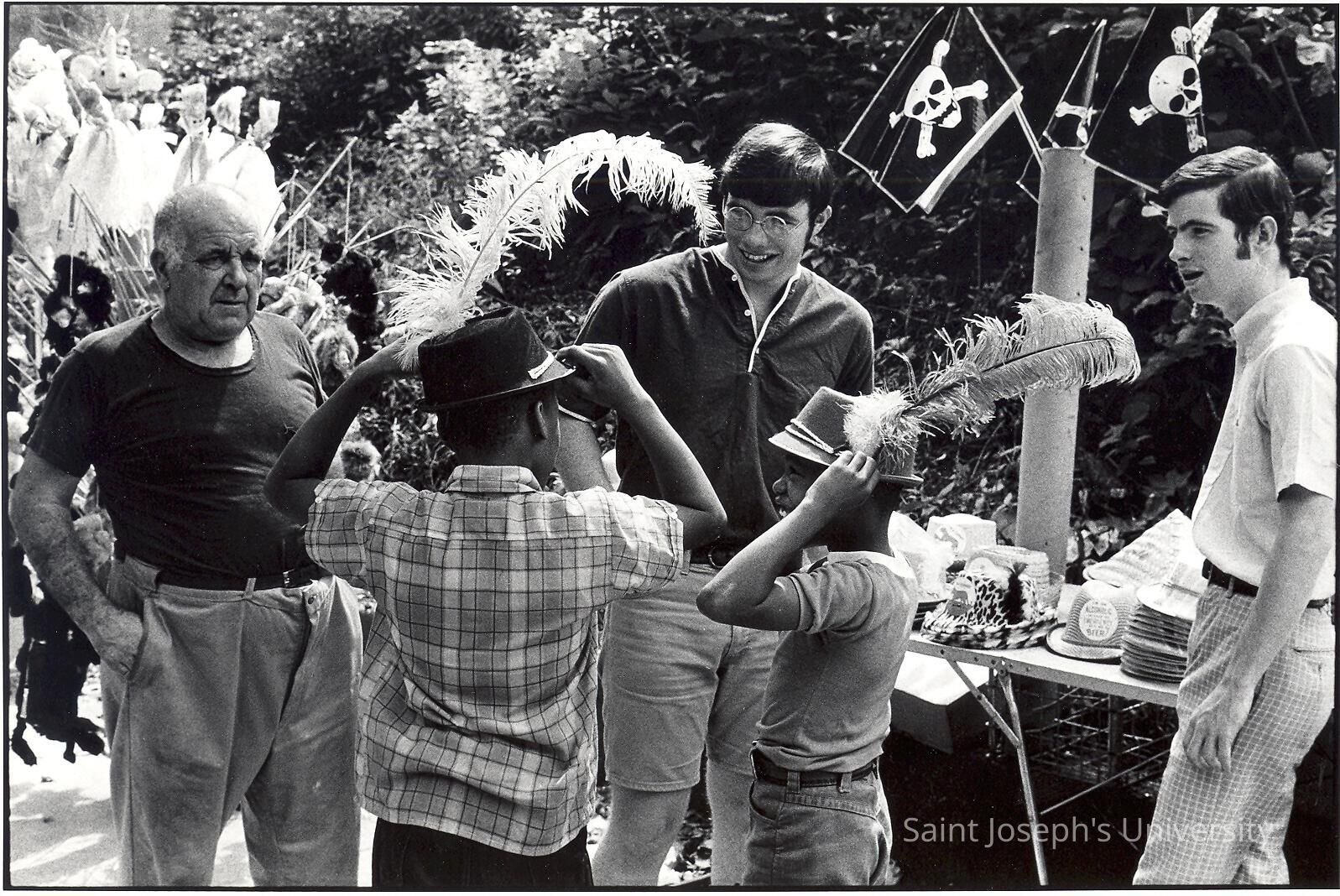 Students from "The House" or SJC Commune at 17th and Girard Streets, Philadelphia, with neighborhood children at street fair.