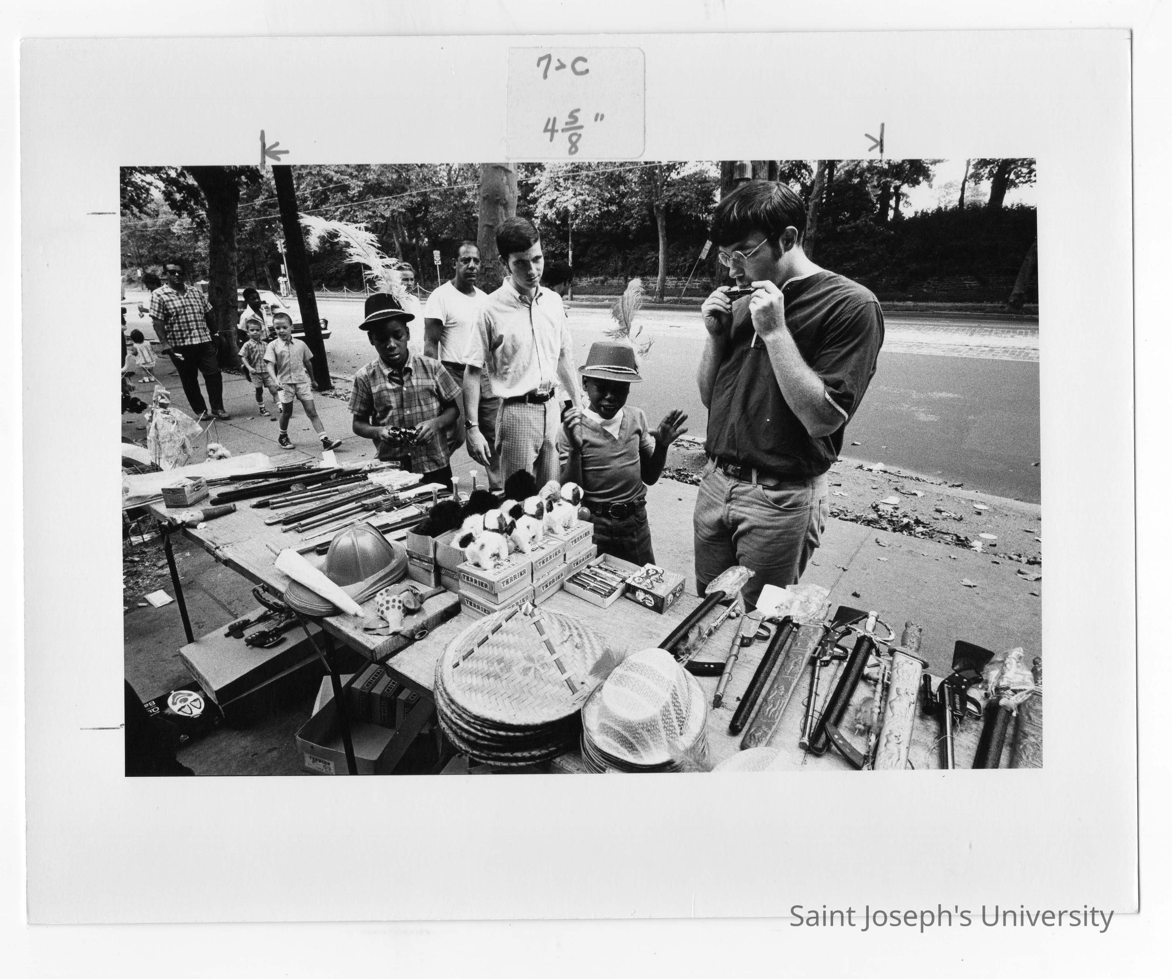 Students from "The House" or SJC Commune at 17th and Girard Streets, Philadelphia, with neighborhood children at street fair.