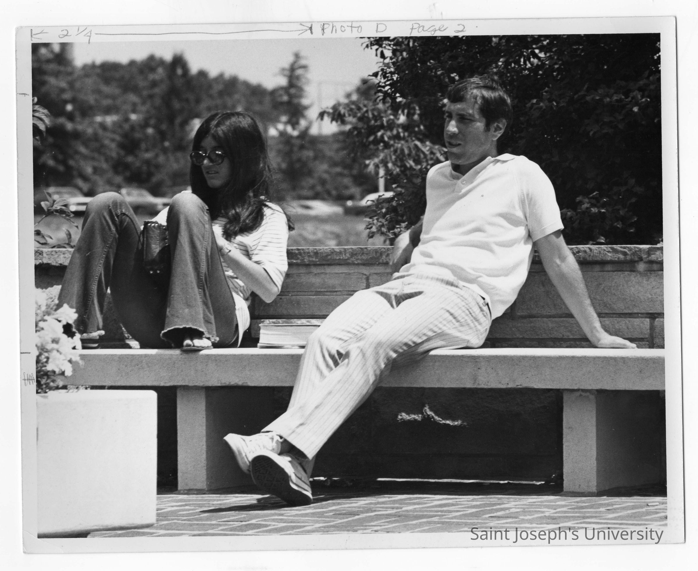 Students sitting on bench in front of Drexel Library?