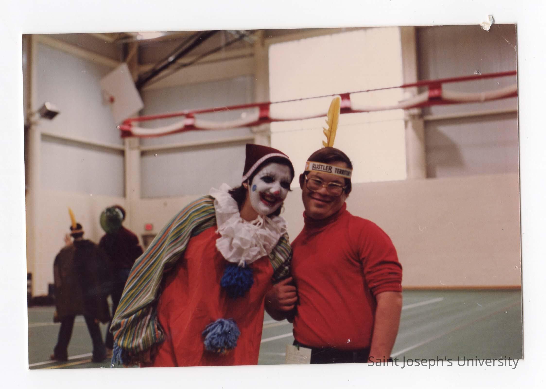 Student dressed as clown and participant at Hand-in-Hand event, a community service/outreach project.